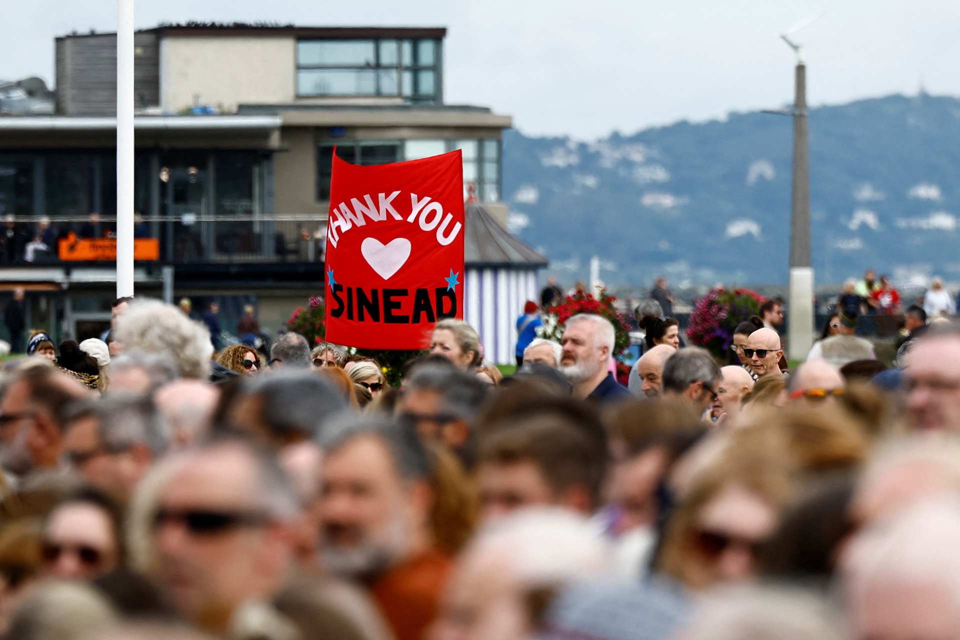 Πολλοί από όσους βρέθηκαν σήμερα στη Μπρέι για να την «αποχαιρετίσουν» είχαν μαζί τους σημαίες και πανό με συνθήματα επηρεασμένα από τις πολιτικές της θέσεις, ενώ τραγούδια της Σινέντ ακούγονταν από ηχεία σε διάφορα σημεία της πόλης.