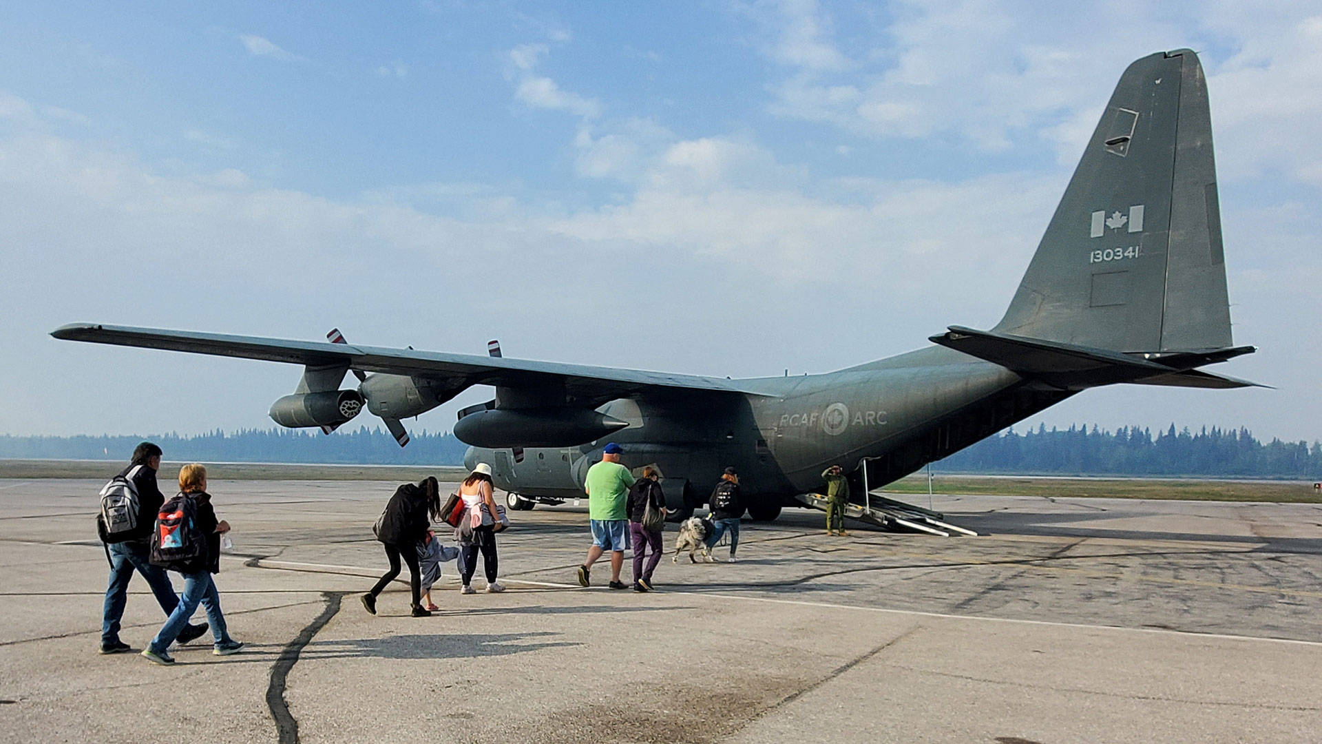 Κάτοικος μιας κοινότητας περίπου 2.250 ανθρώπων οι οποίοι βρίσκονται τώρα υπό εντολή εκκένωσης, ο Τζόρνταν Έβοϊ, 28 ετών, ήλπιζε να εγκαταλείψει την κατοικία του με αυτοκίνητο για να καταφύγει στη γειτονική περιφέρεια Αλμπέρτα, όμως μια σημαντική δασική πυρκαγιά τον ανάγκασε τη Δευτέρα να αλλάξει γνώμη και να διαφύγει με στρατιωτικό αεροπλάνο.