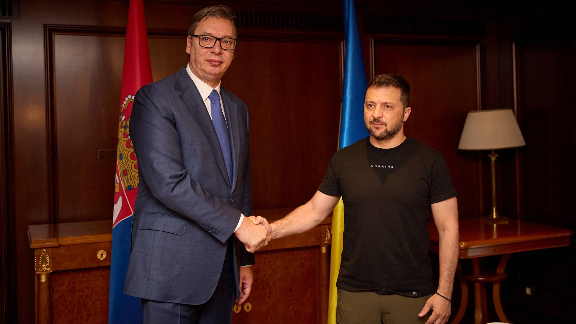 Ο Ουκρανός πρόεδρος Βολοντίμιρ Ζελένσκι δήλωσε σήμερα ότι είχε «ανοιχτές, ειλικρινείς και εποικοδομητικές» συνομιλίες στο Μέγαρο Μαξίμου με τον Σέρβο ομόλογό του Αλεξάνταρ Βούτσιτς.