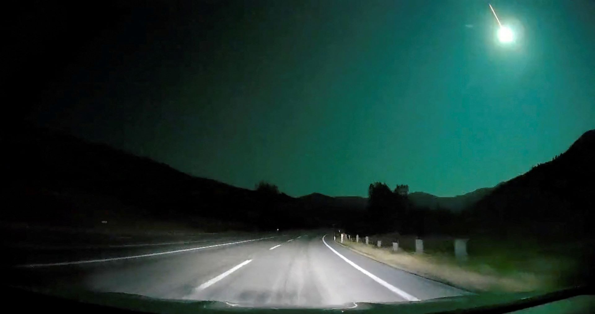A meteor rushed above the Turkish city of Erzurum, lighting up the night sky in green colors, Saturday.