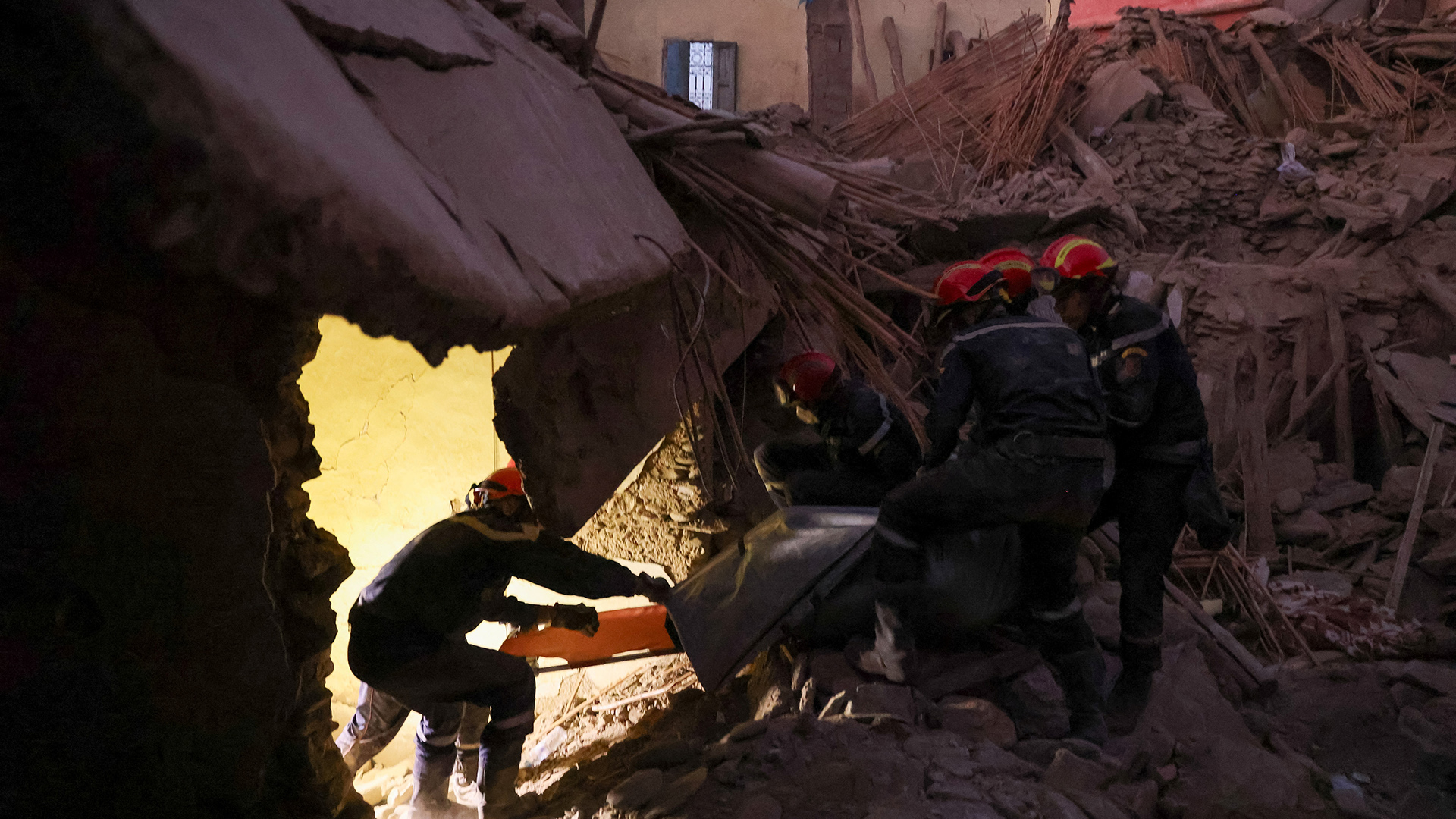 Σωστικά συνεργεία, εθελοντές και μέλη των ενόπλων δυνάμεων αναζητούν επιζήσαντες και προσπαθούν να ανασύρουν πτώματα από τα συντρίμμια, κυρίως σε χωριά στην επαρχία Αλ Χάουζ, επίκεντρο του σεισμού, νότια της τουριστικής πόλης Μαρακές, στο κεντρικό τμήμα του βασιλείου.