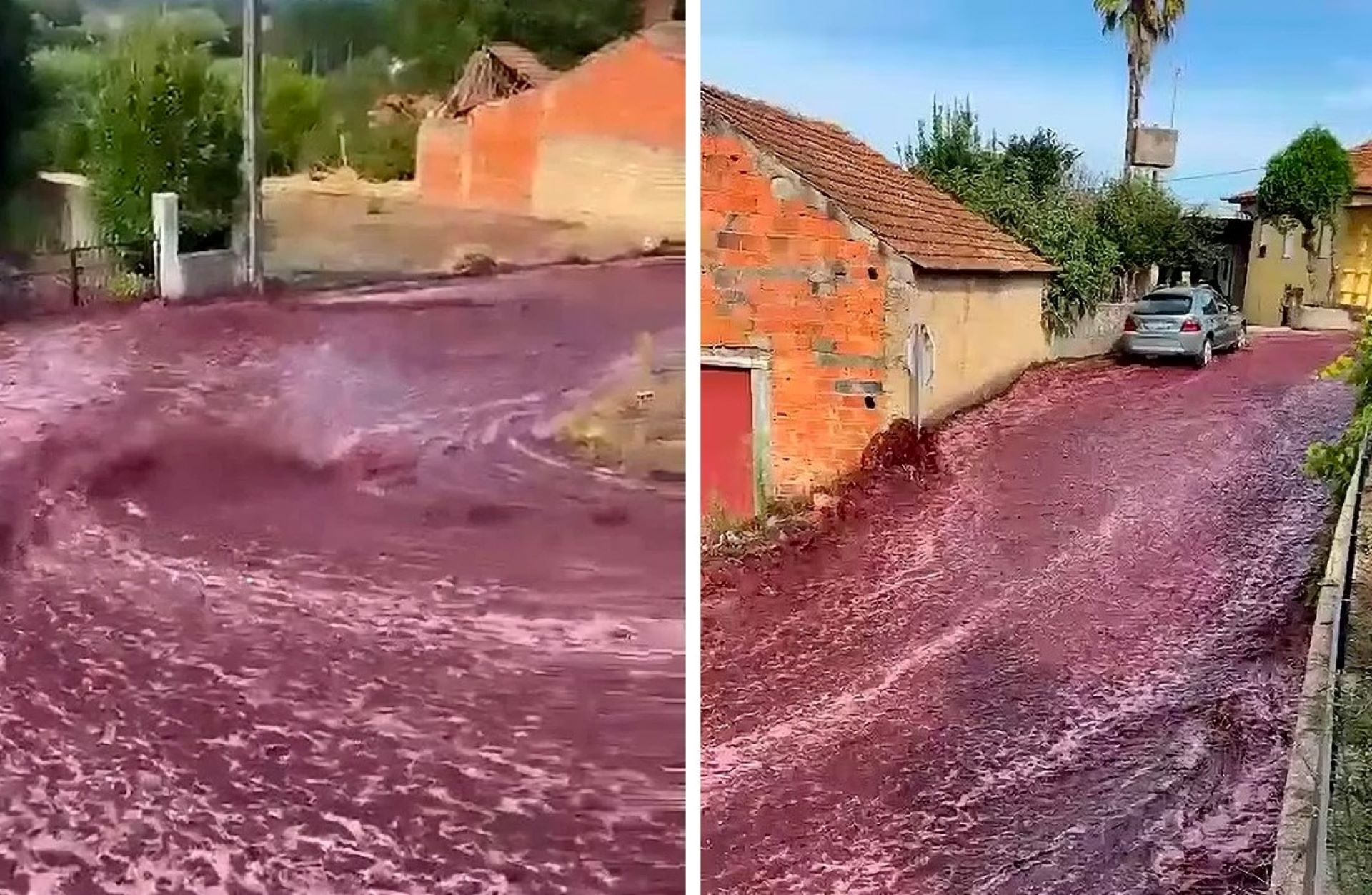 A river of red wine ran through a Portuguese village on Monday (11 September) after a distillery’s tanks failed, releasing around 2.2 million litres of the drink into the streets of São Lourenço do Bairro. pic.twitter.com/wdxLVIzU0a