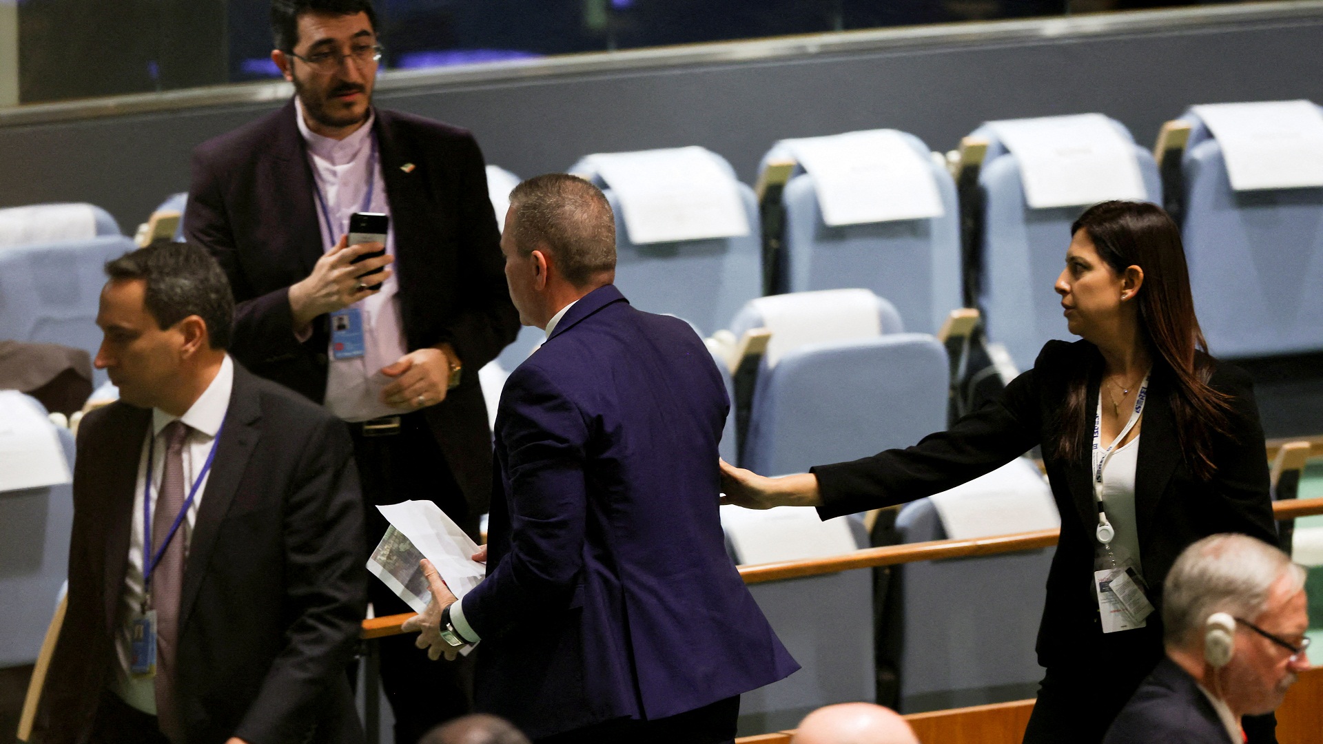 Το προσωπικό ασφαλείας των Ηνωμένων Εθνών συνέλαβε την Τρίτη τον πρέσβη του Ισραήλ στον ΟΗΕ, λίγο αφότου έφυγε από την αίθουσα της Γενικής Συνέλευσης για να διαμαρτυρηθεί για την ομιλία του Ιρανού προέδρου Εμπραχίμ Ραΐσι.