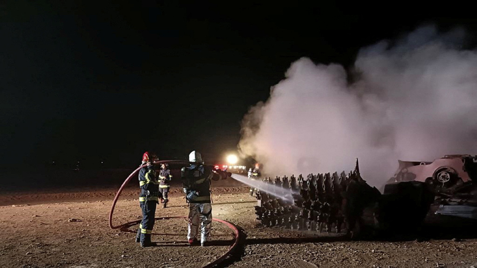 «Αποτέλεσμα του δυστυχήματος ήταν να τραυματιστούν πέντε άτομα, ενώ βρήκαμε και τέσσερις καμένες σορούς», ανέφερε η περιφερειακή επιθεώρηση έκτακτης ανάγκης.