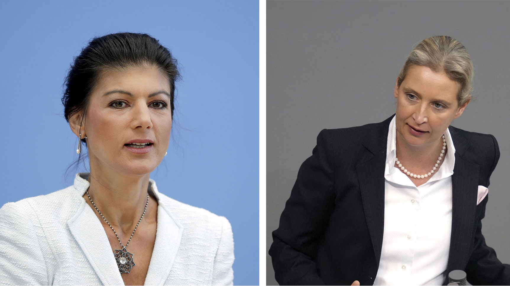 Η σύγκλιση αυτή πουθενά αλλού δεν είναι πιο έκδηλη από ό,τι στο προφίλ των ισχυρών γυναικών στα δύο άκρα του πολιτικού φάσματος στη Γερμανία: της Σάρα Βάγκενκνεχτ, στελέχους του αριστερού Die Linke, που ετοιμάζει δικό της κόμμα, και της Αλις Βάιντελ, επικεφαλής της ξενοφοβικής AfD. Αν και εκκινούν από διαφορετικές αφετηρίες (τη μέριμνα για τον Ανατολικογερμανό εργάτη και την προάσπιση της γερμανικής ταυτότητας, αντιστοίχως), οι δύο ηγέτιδες καταλήγουν σε παρόμοιες θέσεις.