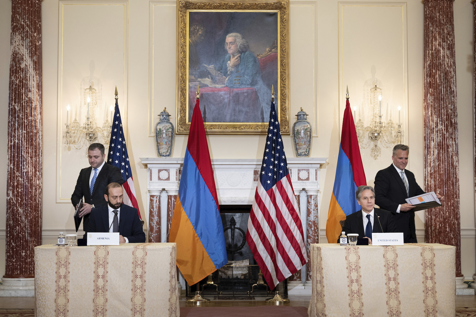 Σημειώνεται ότι την Αρμενία ήταν προγραμματισμένο να επισκεφθούν αυτές τις ημέρες υψηλόβαθμοι Αμερικανοί αξιωματούχοι: εν προκειμένω η επικεφαλής της αμερικανικής Υπηρεσίας Διεθνούς Ανάπτυξης (USAID) Σαμάνθα Πάουερ και ο ασκών χρέη υφυπουργού Εξωτερικών αρμόδιου για την Ευρώπη και τις Ευρασιατικές Υποθέσεις Γιούρι Κιμ.