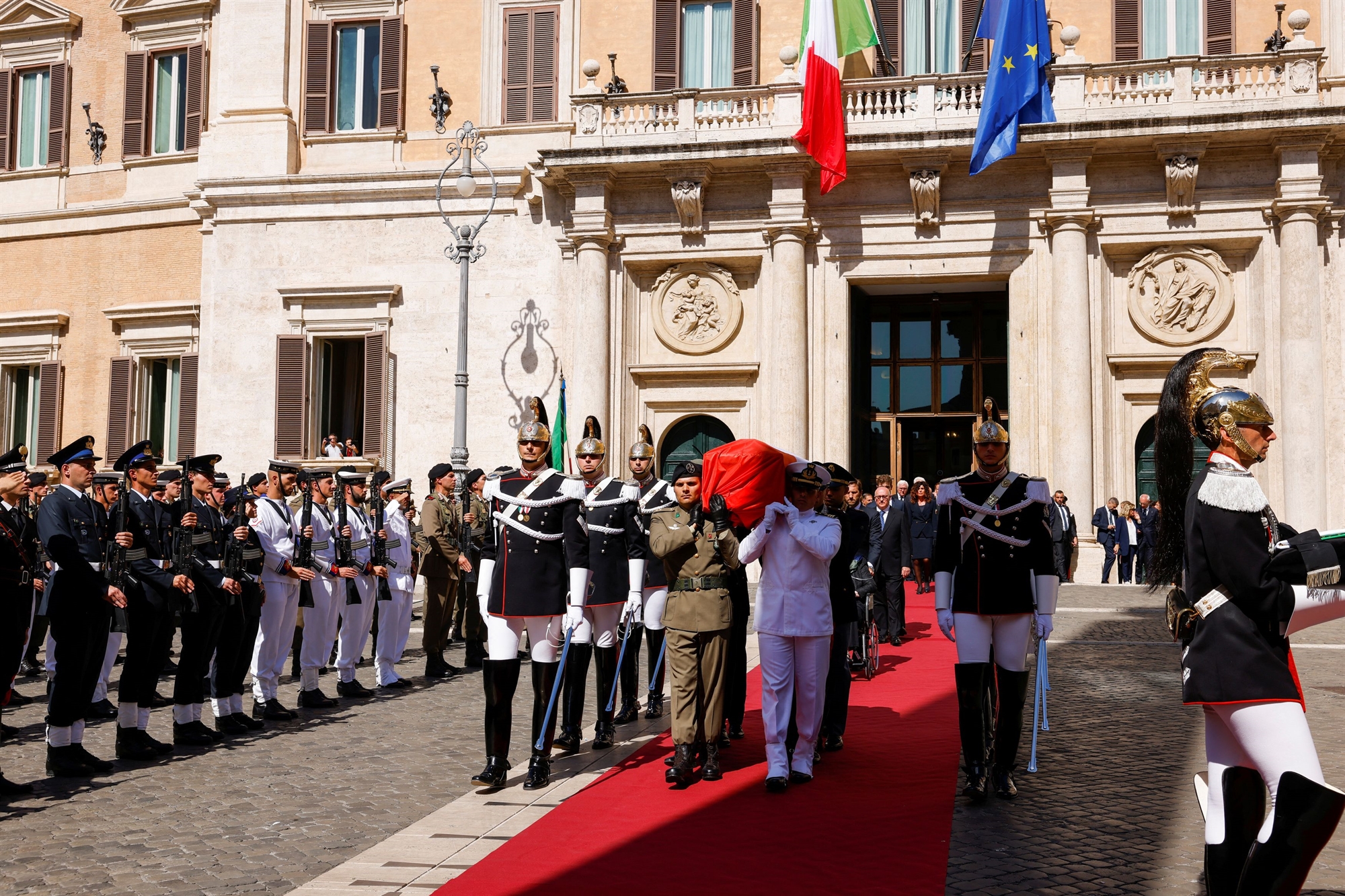 Η σορός του τέθηκε πρώτα σε λαϊκό προσκύνημα, ενώ ήταν η πρώτη φορά που το Παλάτσο Μοντετσιτόριο, όπου εδράζεται η Βουλή των Αντιπροσώπων της Ιταλίας, φιλοξενεί τελετή τέτοιου είδους. Μετά την τοποθέτηση του φερέτρου, όλοι οι βουλευτές στάθηκαν όρθιοι για περισσότερο από δέκα λεπτά, ενώ μεγάλος αριθμός πολιτών παρακολούθησε την τελετή από γιγαντοθόνη που είχε στηθεί έξω από το κτίριο της Βουλής.