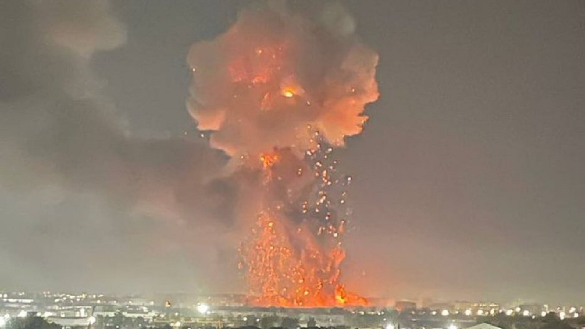 Βίντεο και φωτογραφίες στα μέσα κοινωνικής δικτύωσης έδειχναν φλόγες να ανεβαίνουν στον νυχτερινό ουρανό και ένα τεράστιο σύννεφο καπνού.