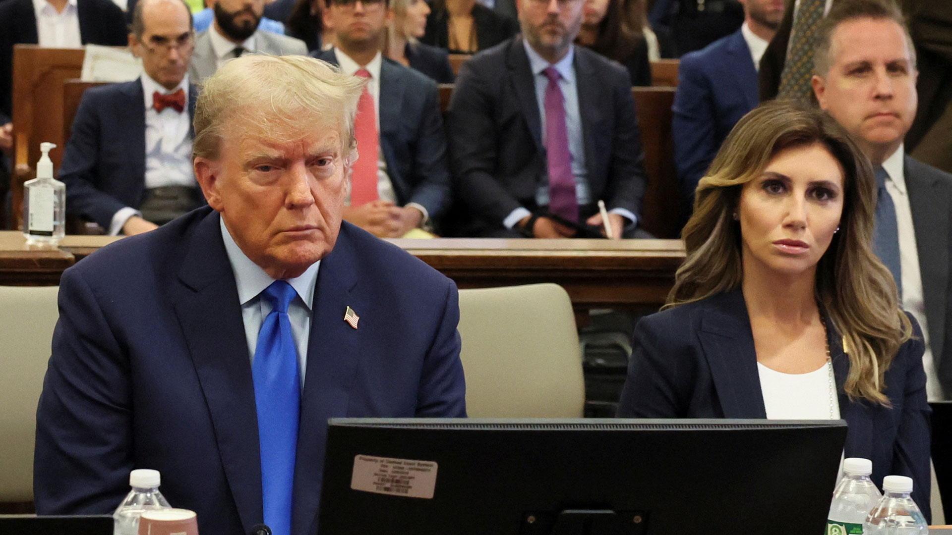 Με μπλε κοστούμι, μπλε ελεκτρίκ γραβάτα, ανέκφραστο πρόσωπο, το σώμα ελαφρώς σκυμμένο και με περιφρονητικό ύφος, ο δισεκατομμυριούχος επιχειρηματίας περιστοιχίζεται από τους δικηγόρους του, Κρις Κάιζ και Αλίνα Χάμπα, έχοντας απέναντί του τον δικαστή Αρθουρ Ενγκορον που θα προεδρεύσει στη διαδικασία. Η δίκη αναμένεται ότι θα διαρκέσει εβδομάδες.