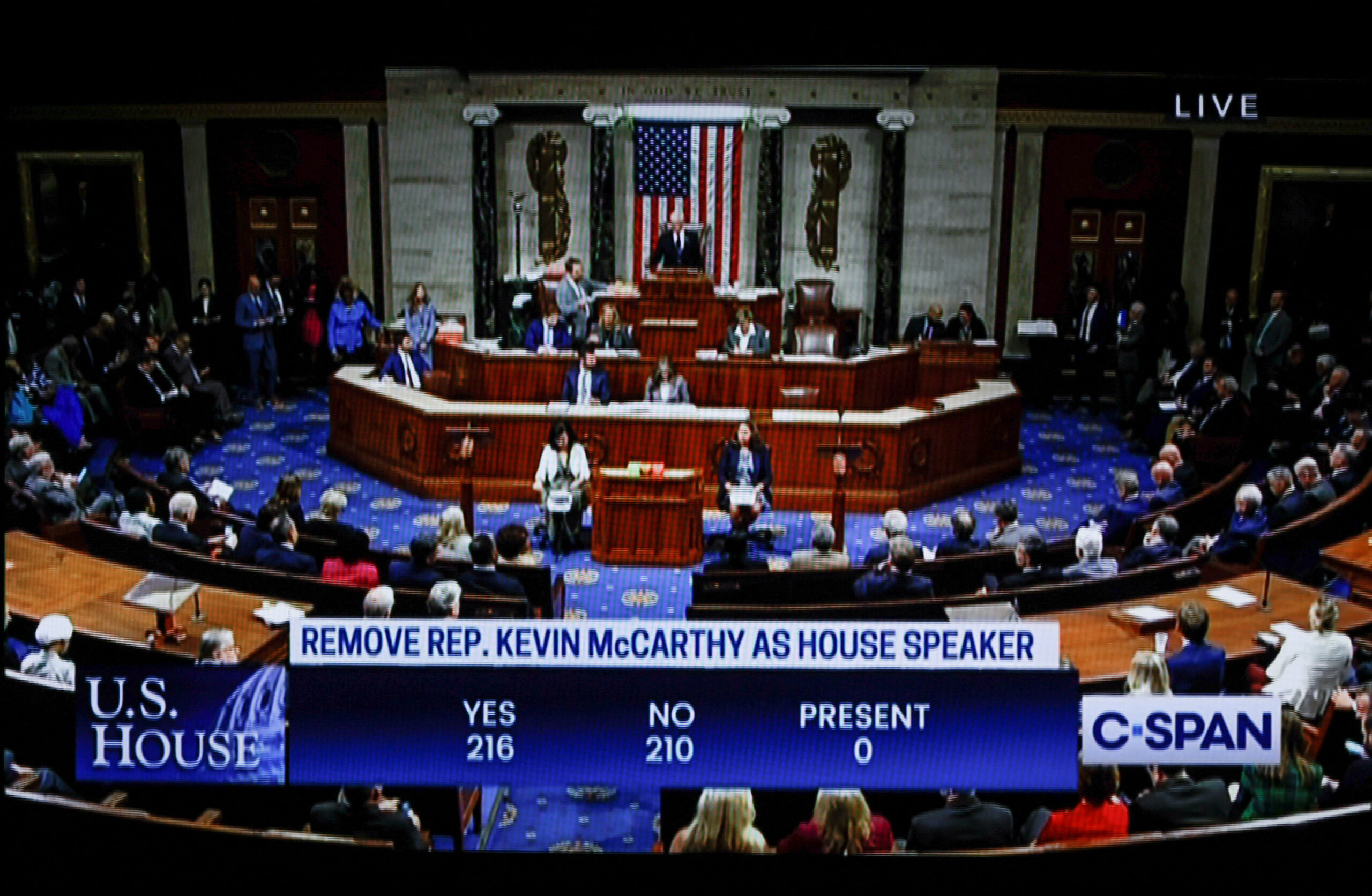 Η Βουλή των Αντιπροσώπων των ΗΠΑ, για πρώτη φορά στην ιστορία της, ψήφισε υπέρ της καθαίρεσης του επικεφαλής της, Κέβιν Μακάρθι.