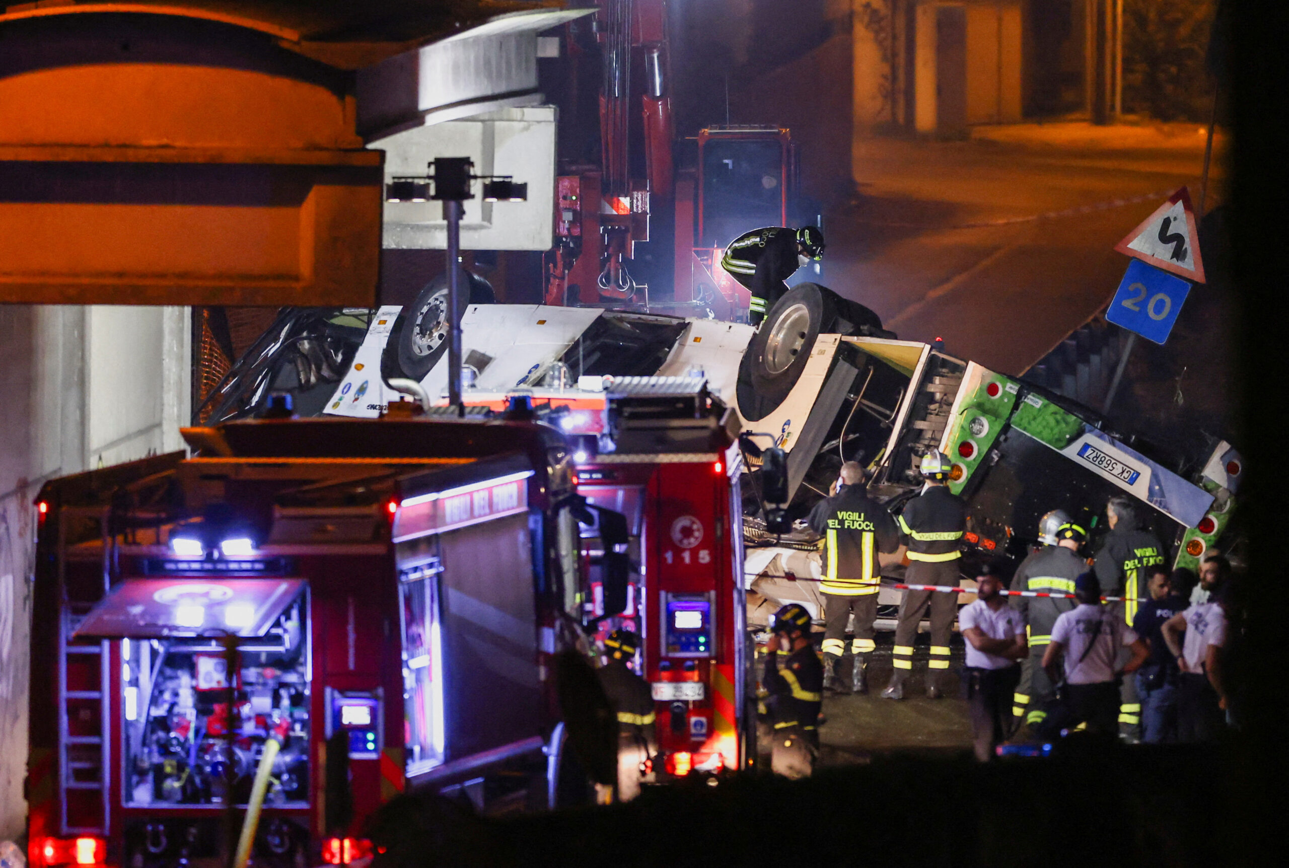 «Το λεωφορείο έχει καταστραφεί ολοσχερώς. Οι πυροσβέστες δυσκολεύονται να βγάλουν τις σορούς», δήλωσε ο Ντι Μπάρι στο τηλεοπτικό δίκτυο Sky Italia.