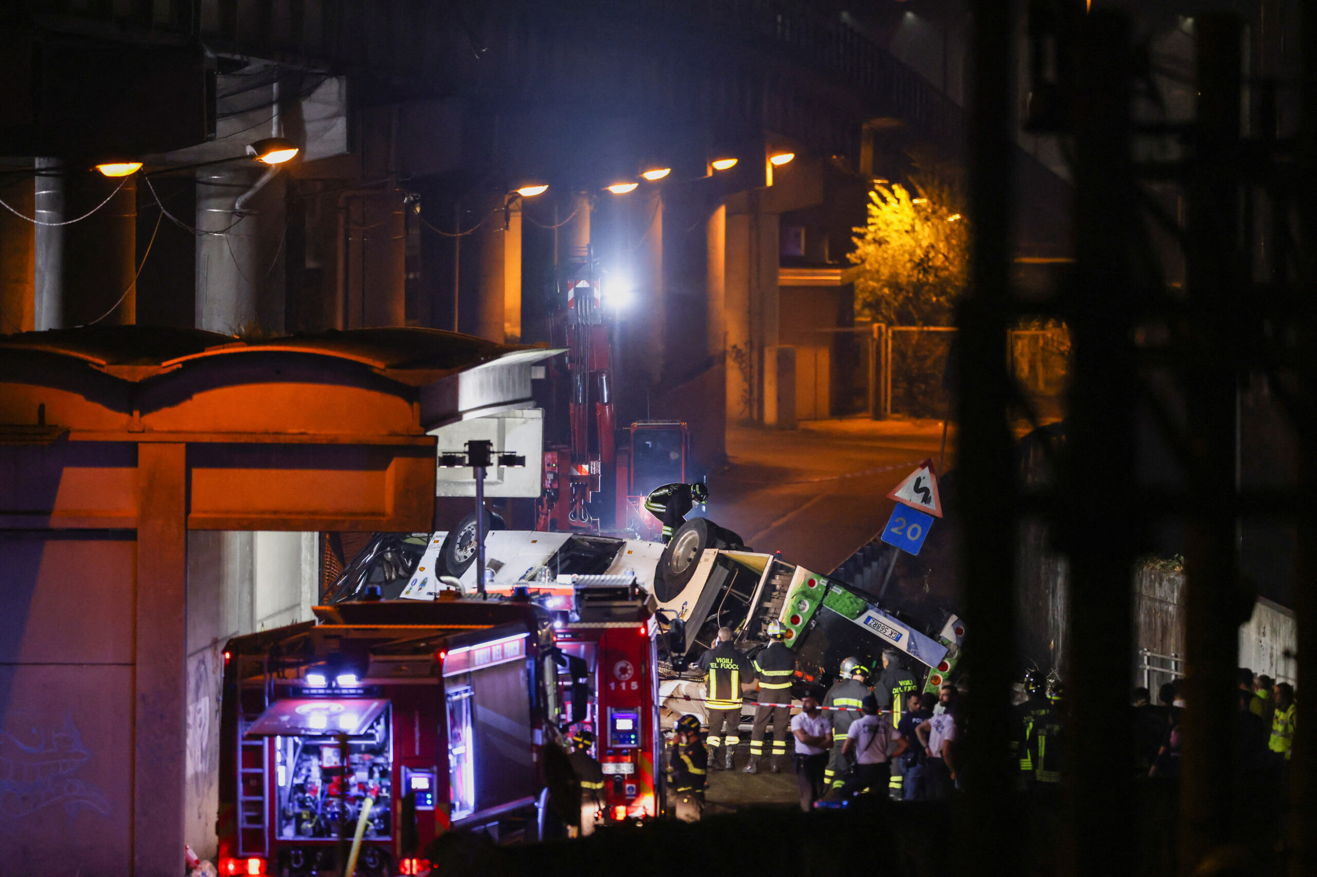 Το ηλεκτρικό λεωφορείο, που μετέφερε ξένους τουρίστες, οι οποίοι επέστρεφαν από εκδρομή στη Βενετία, έπεσε από αερογέφυρα ύψους περίπου 15 μέτρων, χτύπησε στο έδαφος και πήρε φωτιά στην περιοχή Μέστρε της Ιταλίας, αργά την Τρίτη.