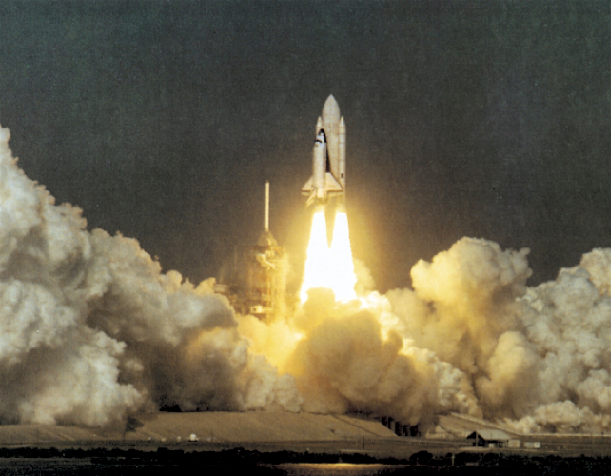 Τον ίδιο εκείνο Απρίλιο του 1981, οι αστροναύτες Τζον Γ. Γιανγκ, κυβερνήτης, βετεράνος των προγραμμάτων Gemini και Apollo της NASA, και Ρόμπερ Λ. Κρίπεν, πιλότος δοκιμών αεροσκαφών, υψώνονταν στον ουρανό από το Διαστημικό Κέντρο Κένεντι της NASA στη Φλόριντα με το διαστημικό λεωφορείο «Κολούμπια». Η παρθενική πτήση του πρώτου επαναχρησιμοποιούμενου διαστημοπλοίου της NASA εγκαινίασε το σύστημα διαστημικών μεταφορών, που με τη συντομογραφία STS (Space Transportation System) χρησιμοποιήθηκε συνολικά 135 φορές. Τα διαστημικά λεωφορεία διατηρούν μέχρι και σήμερα το ρεκόρ πλήθους αμερικανικών εκτοξεύσεων, παρά τον τερματισμό του προγράμματος STS τον Ιούλιο του 2011 με την τελευταία πτήση του «Ατλαντίς».