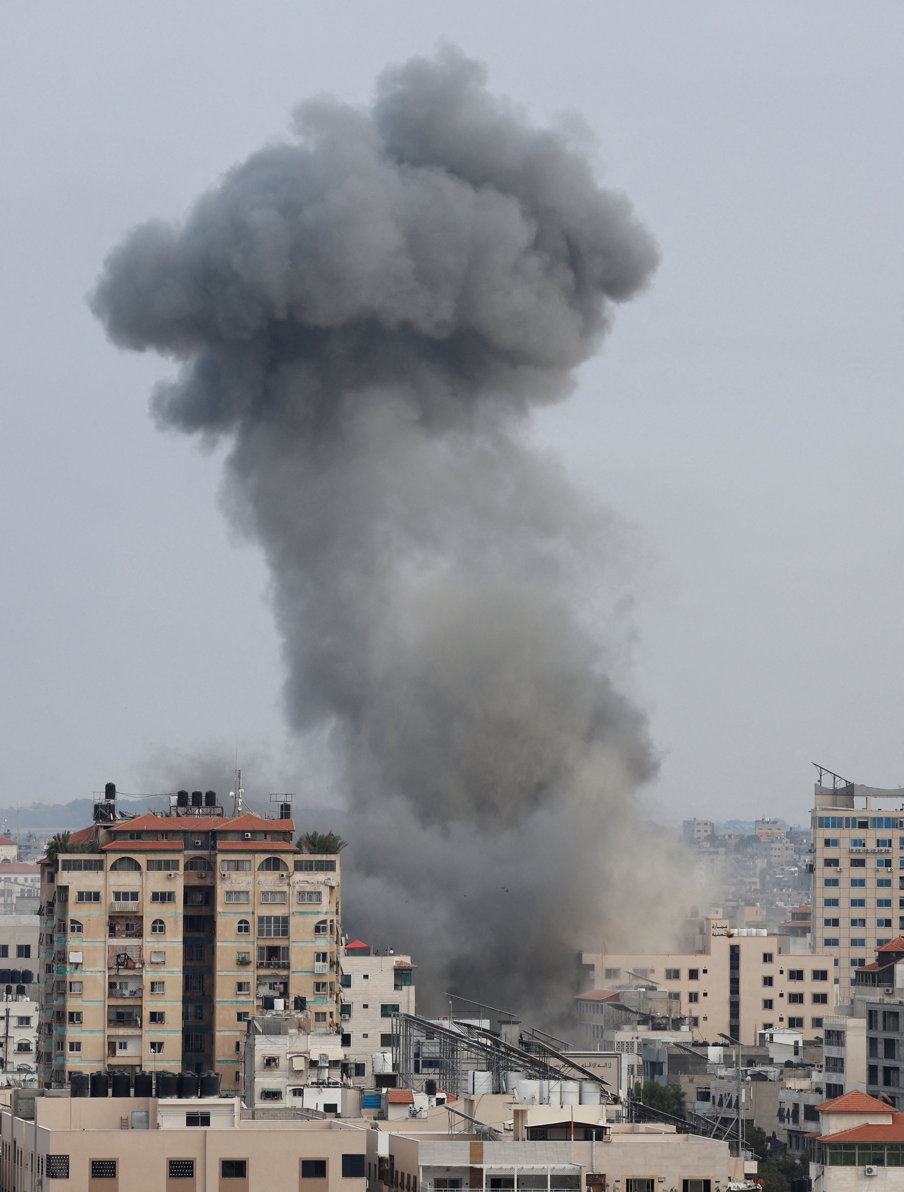Φωτιά και καπνός πάνω από ένα συγκρότημα κατοικιών της πόλης της Γάζας ύστερα από αεροπορική επιδρομή των Ισραηλινών - Φωτ.: AP Photo/Adel Hana