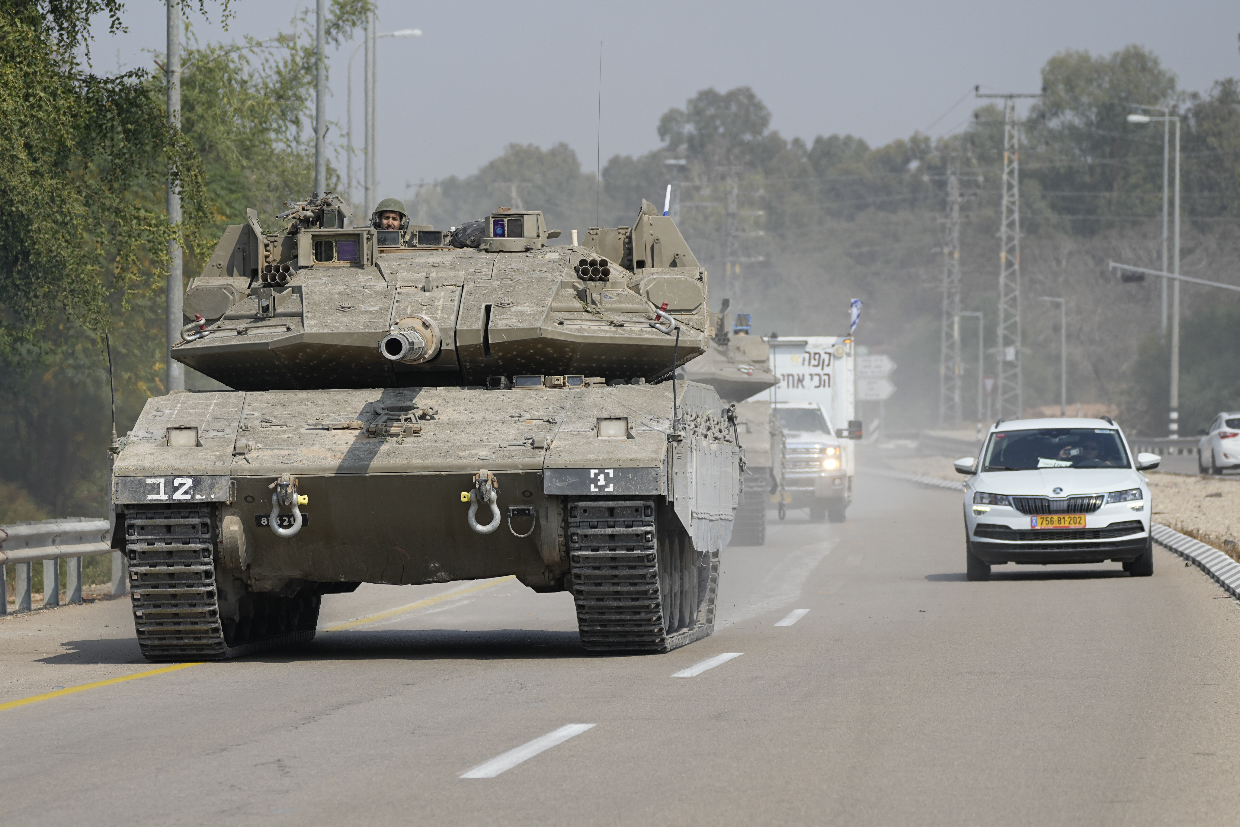 Ισραηλινό τανκ κινείται νότια προς τη Σντερότ, κοντά στα σύνορα με τη Γάζα - Φωτ.: Ohad Zwigenberg/AP
