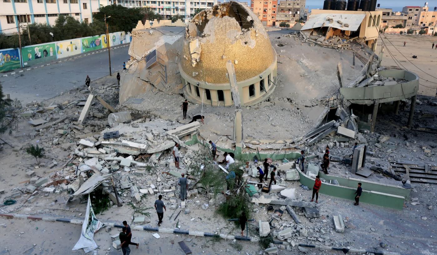 - 17:08Το Τζαμί Al-Amin Muhammad, στην πόλη Khan Younis της Γάζας, ύστερα από ισραηλινή αεροπορική επιδρομή