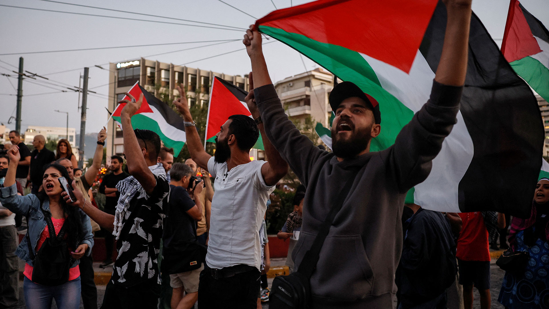 - 21:22Υποστηρικτές της Παλαιστίνης διαδήλωσαν κοντά στην ισραηλινή πρεσβεία στην Αθήνα