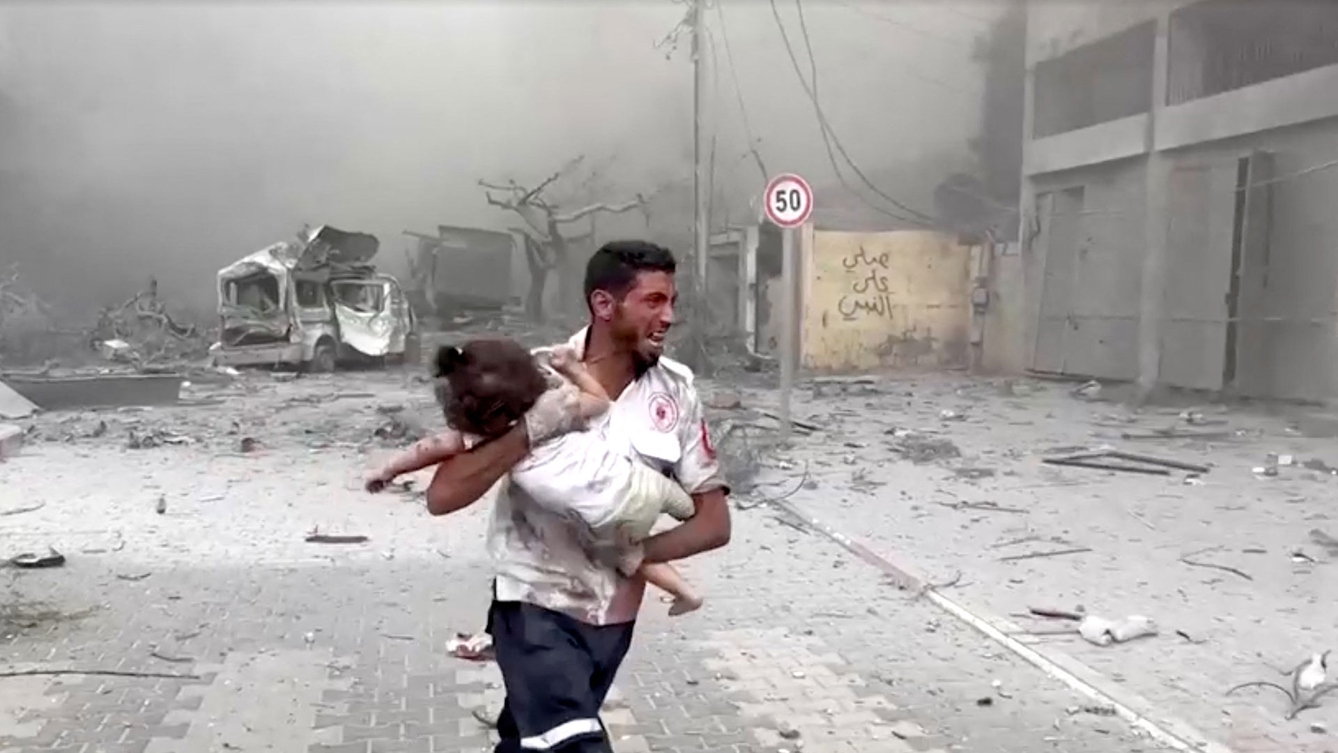 - 18:06Γάζα: Γιατρός μεταφέρει τραυματισμένο παιδί σε ασθενοφόρο