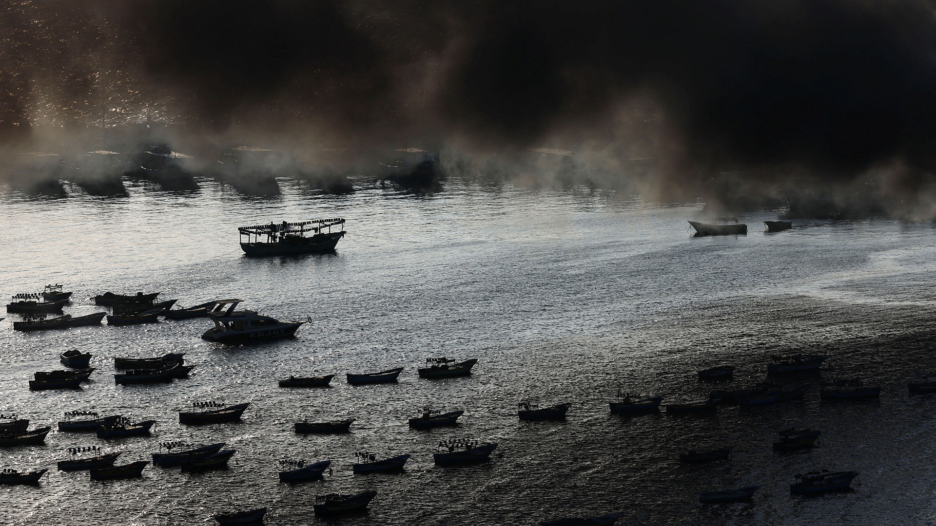 - 17:46Καπνός υψώνεται στον ουρανού μετά τα ισραηλινά πλήγματα στο λιμάνι της πόλης της Γάζας