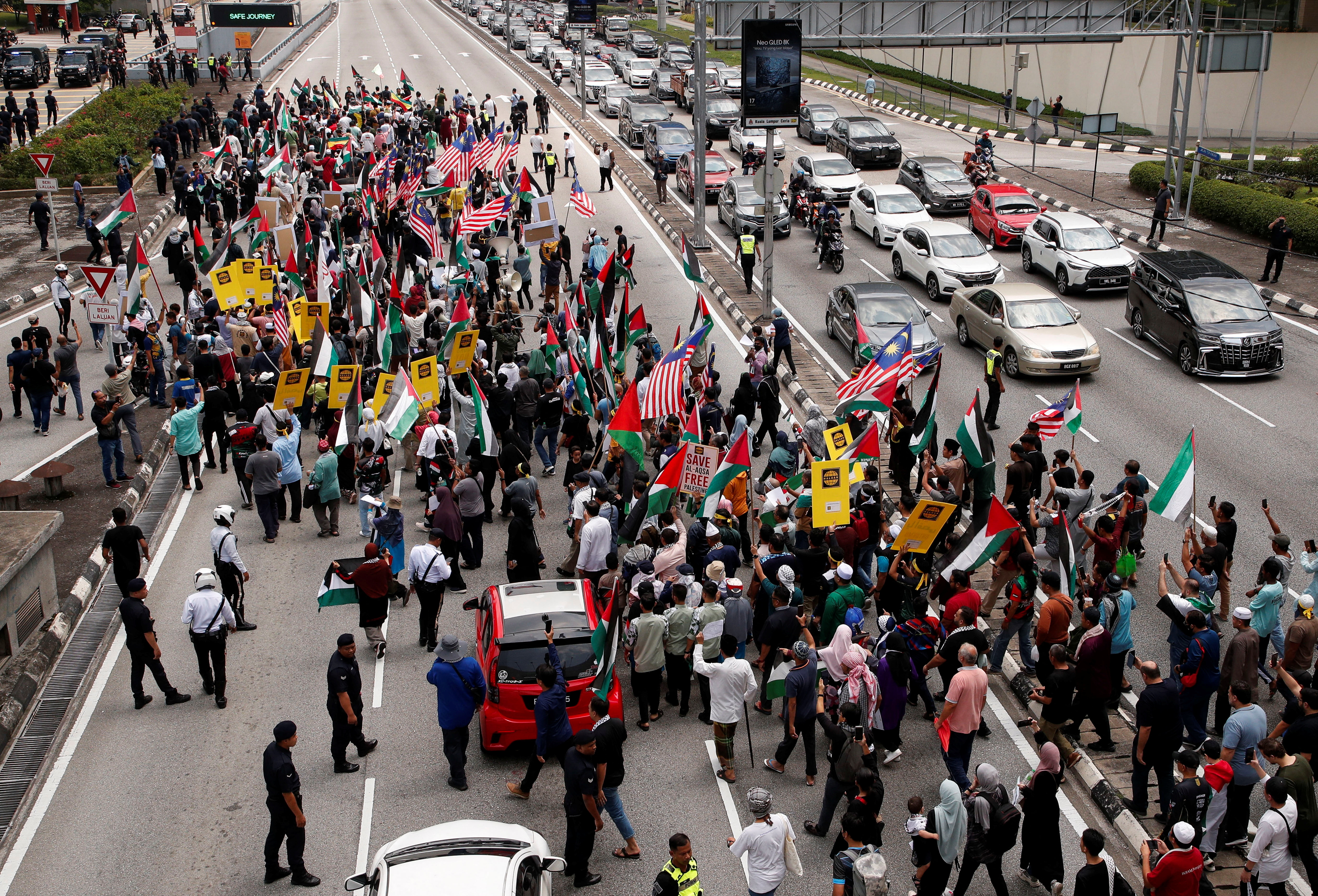 - 12:10Διαδηλωτές διασχίζουν αυτοκινητόδρομο στην Κουάλα Λουμπούρ, σε συγκέντρωση αλληλεγγύης προς τους Παλαιστινίους