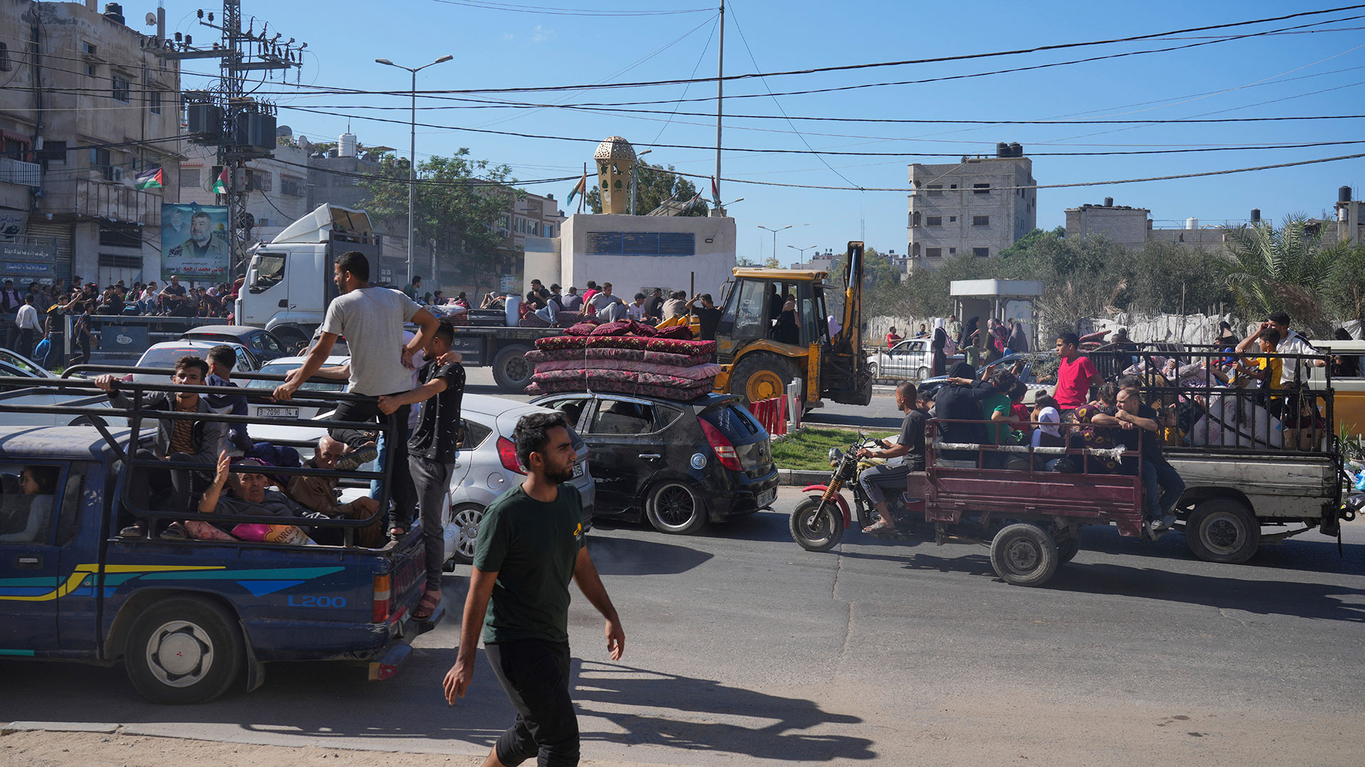 «Καραβάνια» Παλαιστινίων, ωστόσο, πλημμύρισαν τους δρόμους – άνθρωποι οι οποίοι μάζεψαν τα υπάρχοντά τους και κατευθύνθηκαν προς τον νότο. Εκατοντάδες αυτοκίνητα, μοτοσικλέτες και φορτηγά, βαριά φορτωμένα, καταγράφηκαν να κινούνται στον κεντρικό αυτοκινητόδρομο της Γάζας. Μεταξύ αυτών που προσπαθούν να φτάσουν σε ασφαλέστερες περιοχές είναι πολλά παιδιά. Σχεδόν ο μισός πληθυσμός της Γάζας είναι κάτω των 18 ετών. Σύμφωνα με το BBC, o κόσμος ταξιδεύει με αγελάδες, καμήλες, πρόβατα και γαϊδούρια, ενώ πολλές οικογένειες μετακινούνται με τα πόδια.
