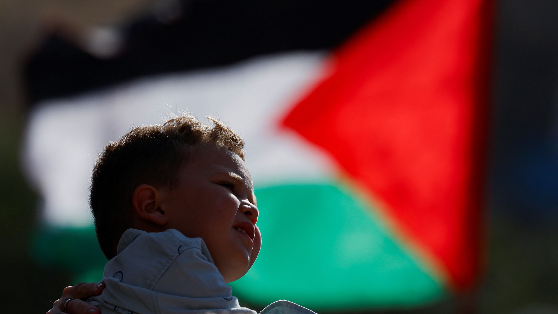- 17:46Ενα παιδί στους ώμους άνδρα κατά τη διάρκεια διαδήλωσης στη Μάλτα υπέρ των Παλαιστινίων