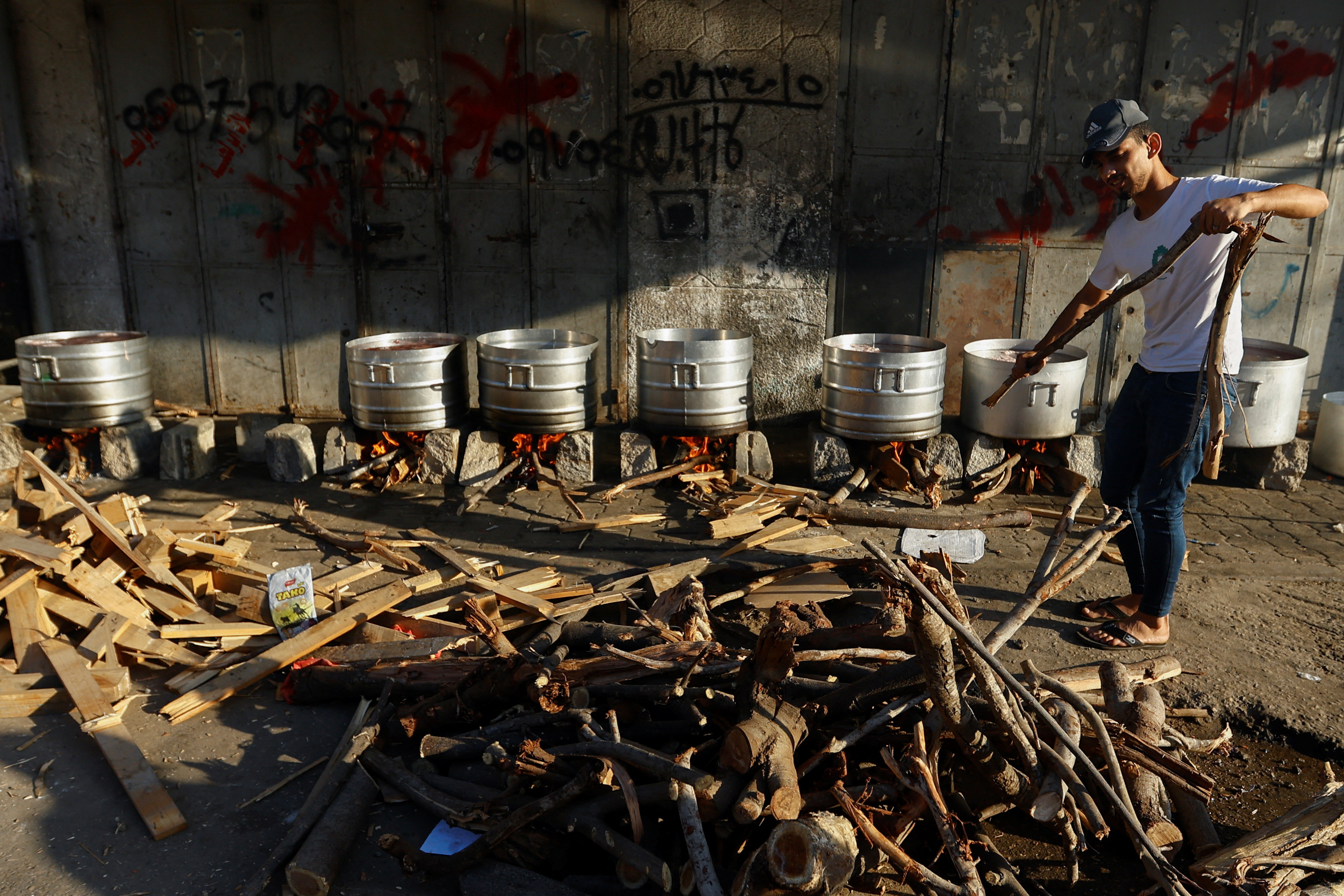 Οι εγκλωβισμένοι πολίτες στη Χαν Γιούνις της Γάζας μαγειρεύουν με καυσόξυλα εν μέσω ελλείψεων καυσίμων και αερίου - Φωτ.: REUTERS/Ibraheem Abu Mustafa