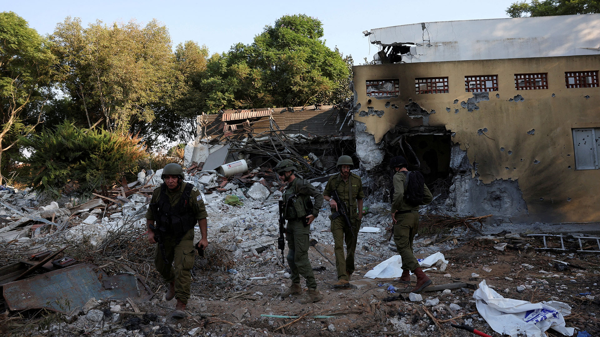 - 18:28Ισραηλινοί στρατιώτες περιπολούν στο κιμπούτς Κφαρ Αζά