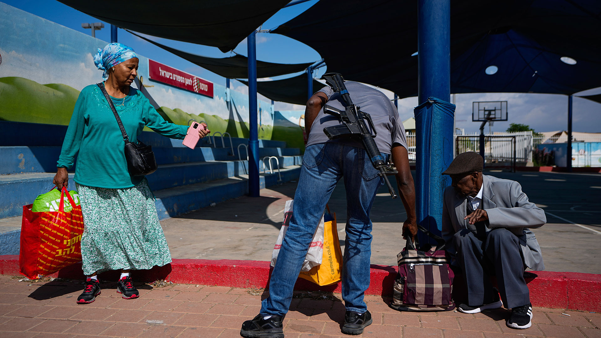 Τρία λεωφορεία, με περίπου πενήντα επιβάτες το καθένα, περιμένουν έξω από ένα σχολείο στο κέντρο του Σντερότ και ετοιμάζονται να αναχωρήσουν. Οι κάτοικοι αυτής της ισραηλινής πόλης, η οποία δέχτηκε την επίθεση της Χαμάς στις 7 Οκτωβρίου, καλούνται σήμερα να την εκκενώσουν.