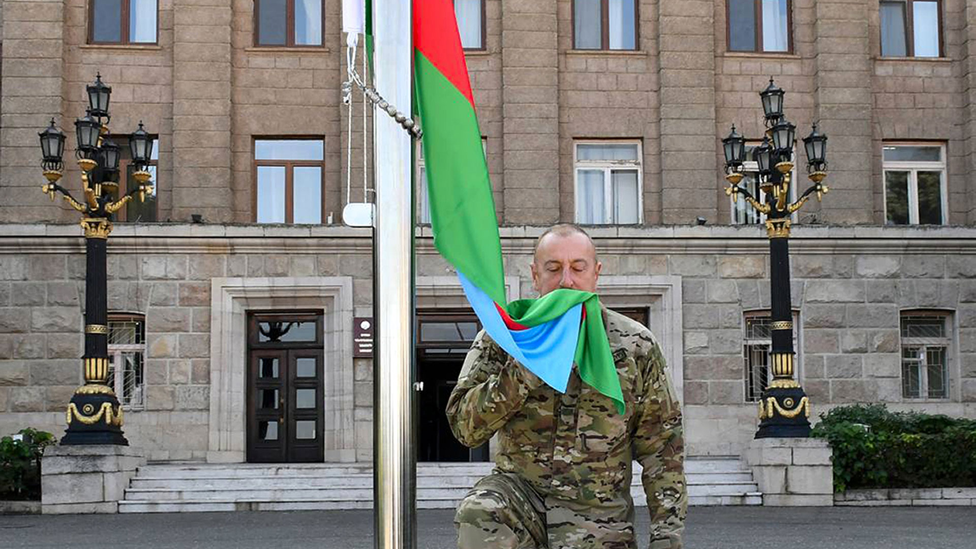 Ο πρόεδρος του Αζερμπαϊτζάν, Ιλχάμ Αλίεφ, ύψωσε χθες την αζερική σημαία στη μεγαλύτερη πόλη και πρωτεύουσα της αμφισβητούμενης περιοχής του Ναγκόρνο-Καραμπάχ, Χανκέντι (Στεπανακέρτ για τους Αρμενίους) επισφραγίζοντας την κατάληψη του περίκλειστου θύλακα από τη χώρα. Το Μπακού δημοσίευσε φωτογραφίες του Αλίεφ να περιοδεύει στο Καραμπάχ. «Ο πρόεδρος της Δημοκρατίας του Αζερμπαϊτζάν, Ιλχάμ Αλίεφ, ύψωσε τη σημαία της Δημοκρατίας του Αζερμπαϊτζάν στην πόλη Χανκέντι και εκφώνησε ομιλία», ανέφερε η προεδρία σε μια λακωνική ανακοίνωσή της. Η παρουσία του εκεί αποτελεί ένδειξη πως οι συγκρούσεις έχουν πλέον παύσει σε μια περιοχή που επί σειρά ετών αποτελούσε «χύτρα που βράζει» και το ενκλάβιο έχει πλέον περάσει οριστικά στην κατοχή του Αζερμπαϊτζάν.