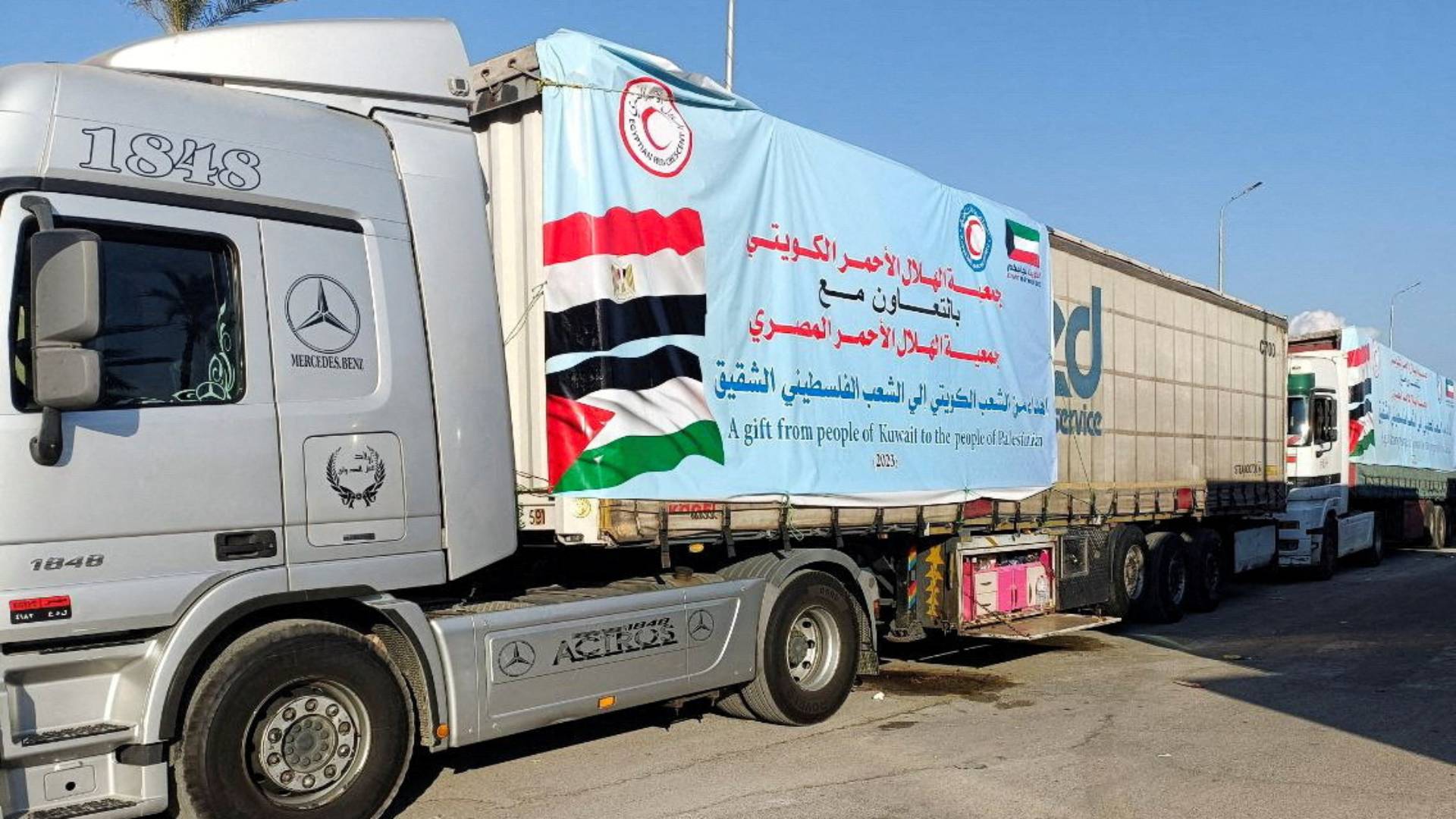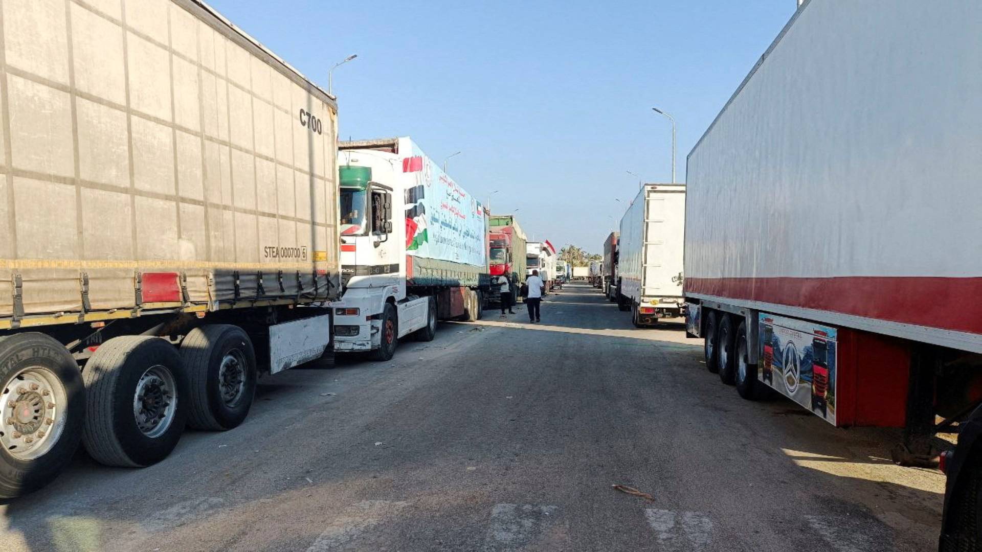 Φορτηγά με ανθρωπιστική βοήθεια περιμένουν να εισέλθουν στη Γάζα