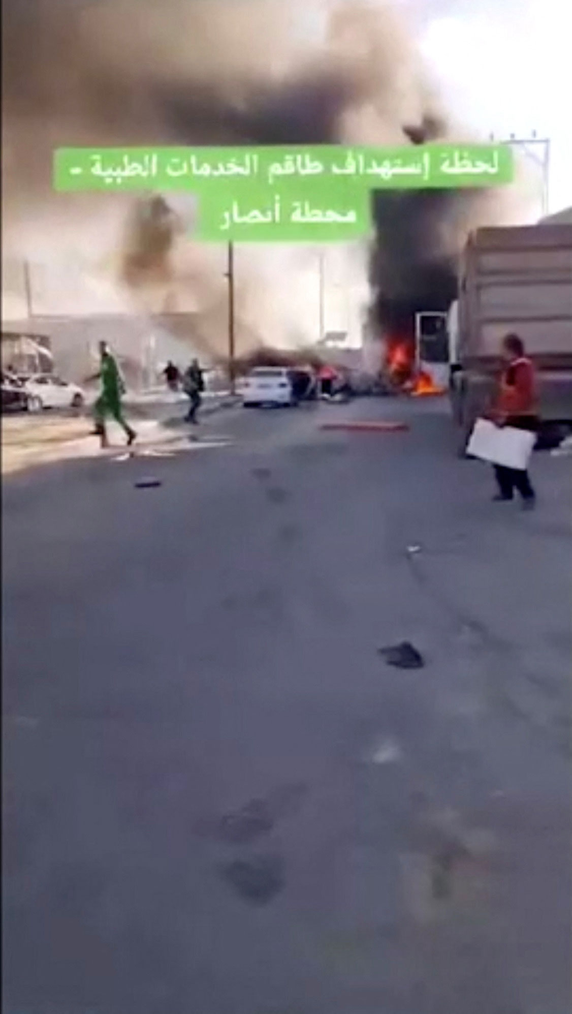 - 16:35Καρέ από βίντεο στις 16 Οκτωβρίου απεικονίζει επίθεση στο σταθμό Ανσάρ στη Γάζα