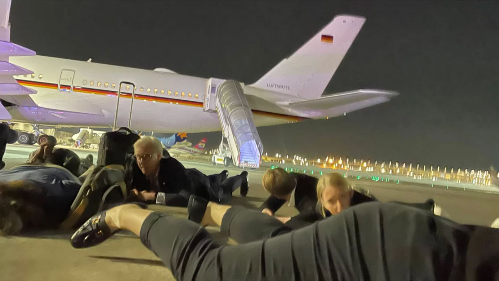 Ο κ. Σολτς επιβιβάστηκε σε αυτοκίνητο και οδηγήθηκε σε ασφαλές σημείο, ενώ οι υπόλοιποι επιβάτες ακολούθησαν τις οδηγίες των ισραηλινών δυνάμεων ασφαλείας και ξάπλωσαν στο έδαφος, δίπλα στο αεροπλάνο.