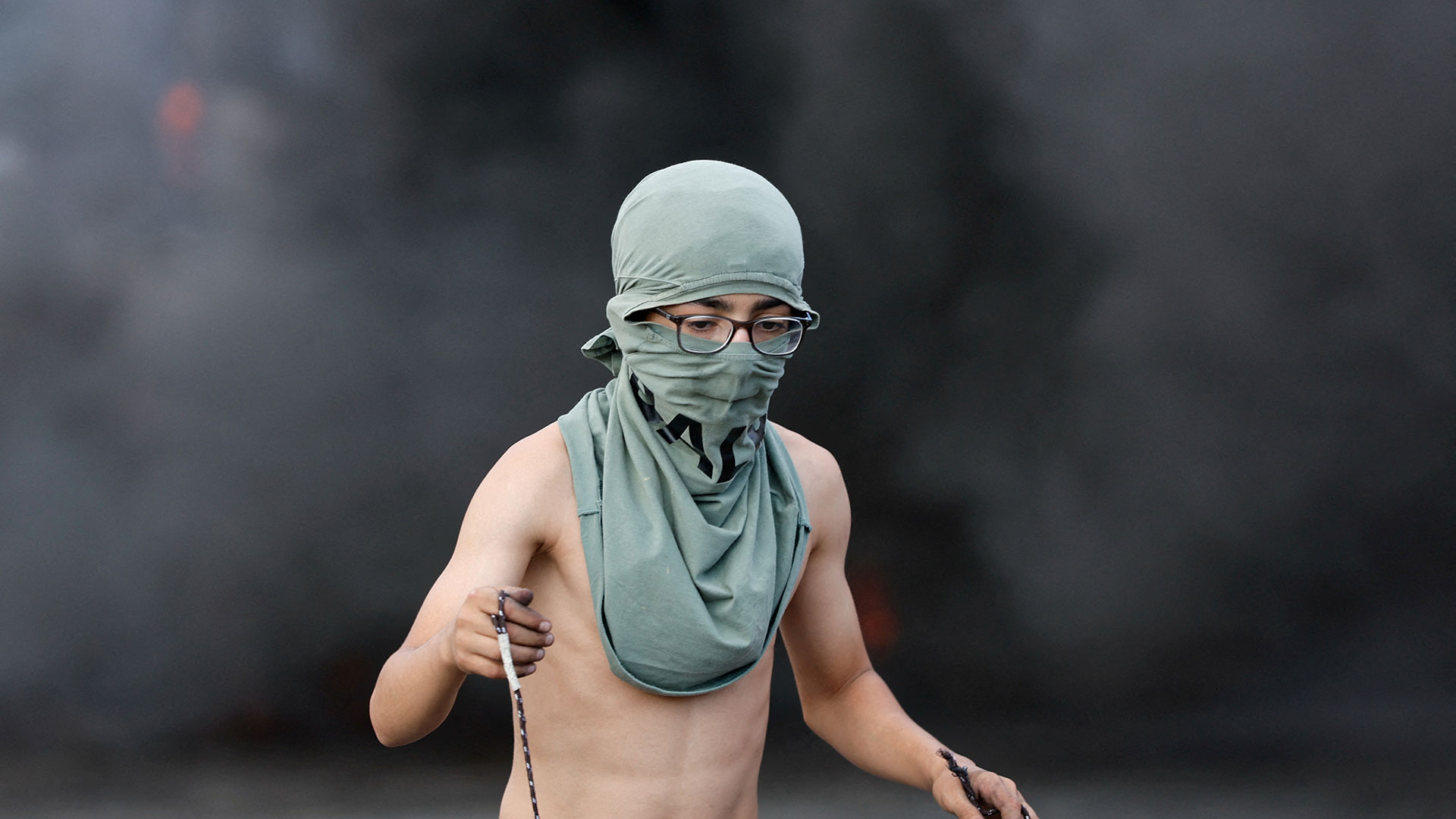 - 19:48Νεαρός Παλαιστίνιος με σφεντόνα κατά τη διάρκεια συγκρούσεων με τις ισραηλινές δυνάμεις κοντά στη Ραμάλα