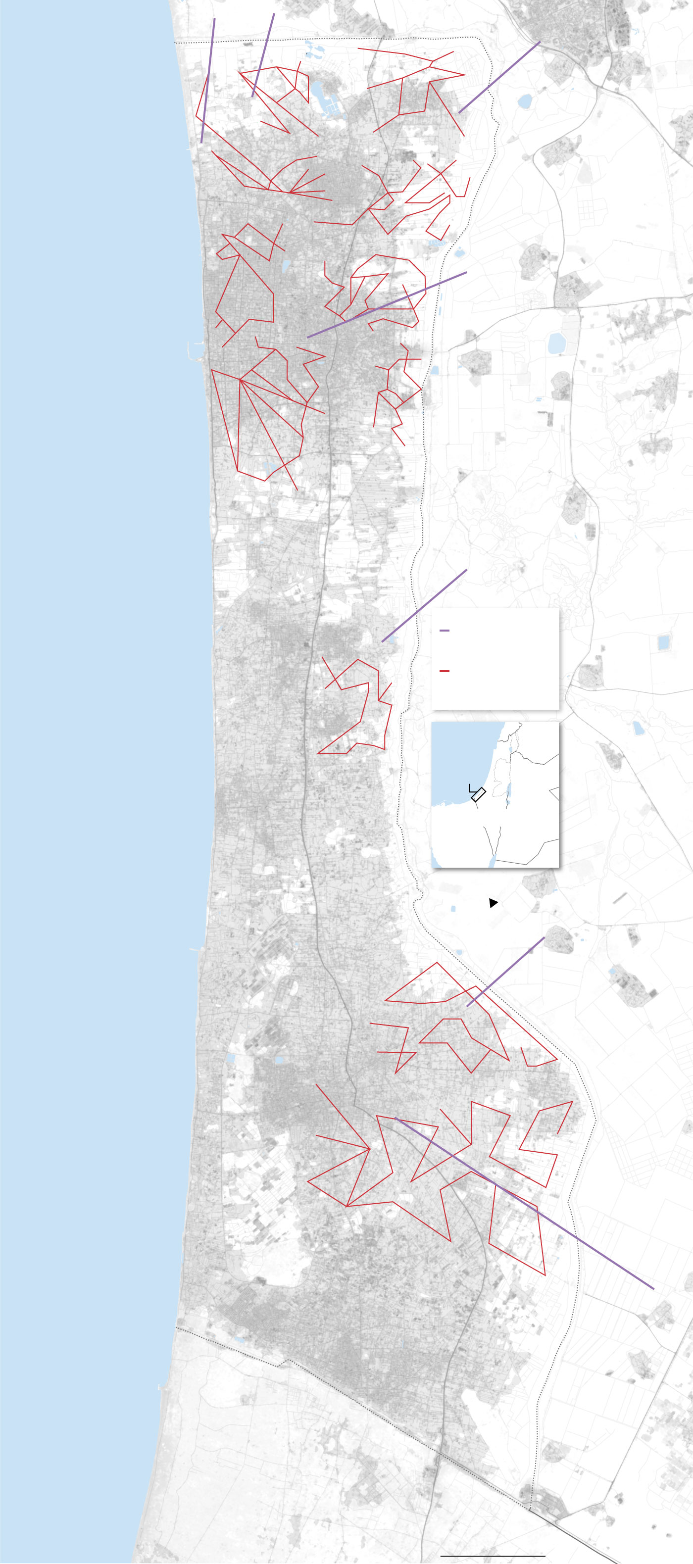Ο χάρτης των ισραηλινών δυνάμεων ασφαλείας καταγράφει το δίκτυο των τούνελ κάτω από την πόλη της Γάζας, αλλά και σε άλλες περιοχές του παλαιστινιακού θυλάκου.