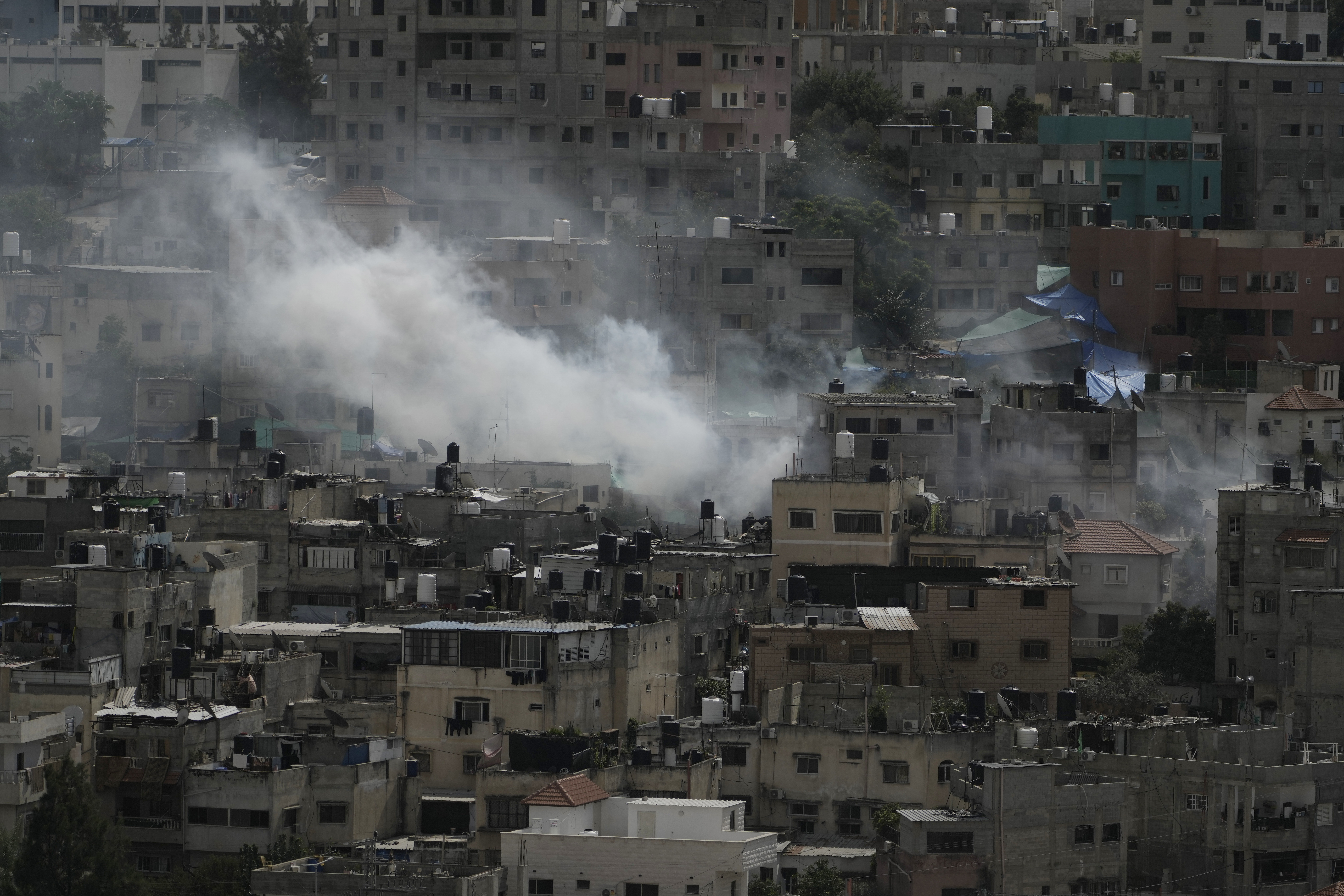 Καπνός πάνω από τη Νουρ Σαμς της Δυτικής Οχθης μετά από επιδρομή των Ισραηλινών - Φωτ.: AP Photo/Majdi Mohammed.