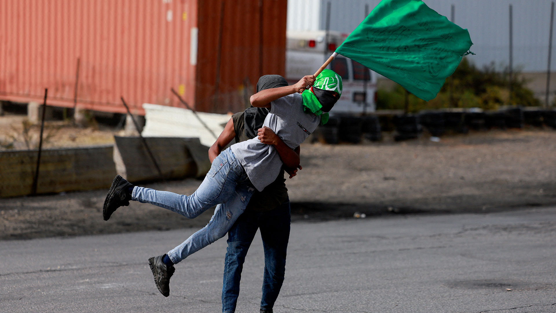 - 17:07Ένας Παλαιστίνιος μεταφέρει έναν τραυματία κατά τη διάρκεια συγκρούσεων κοντά στη Ραμάλα