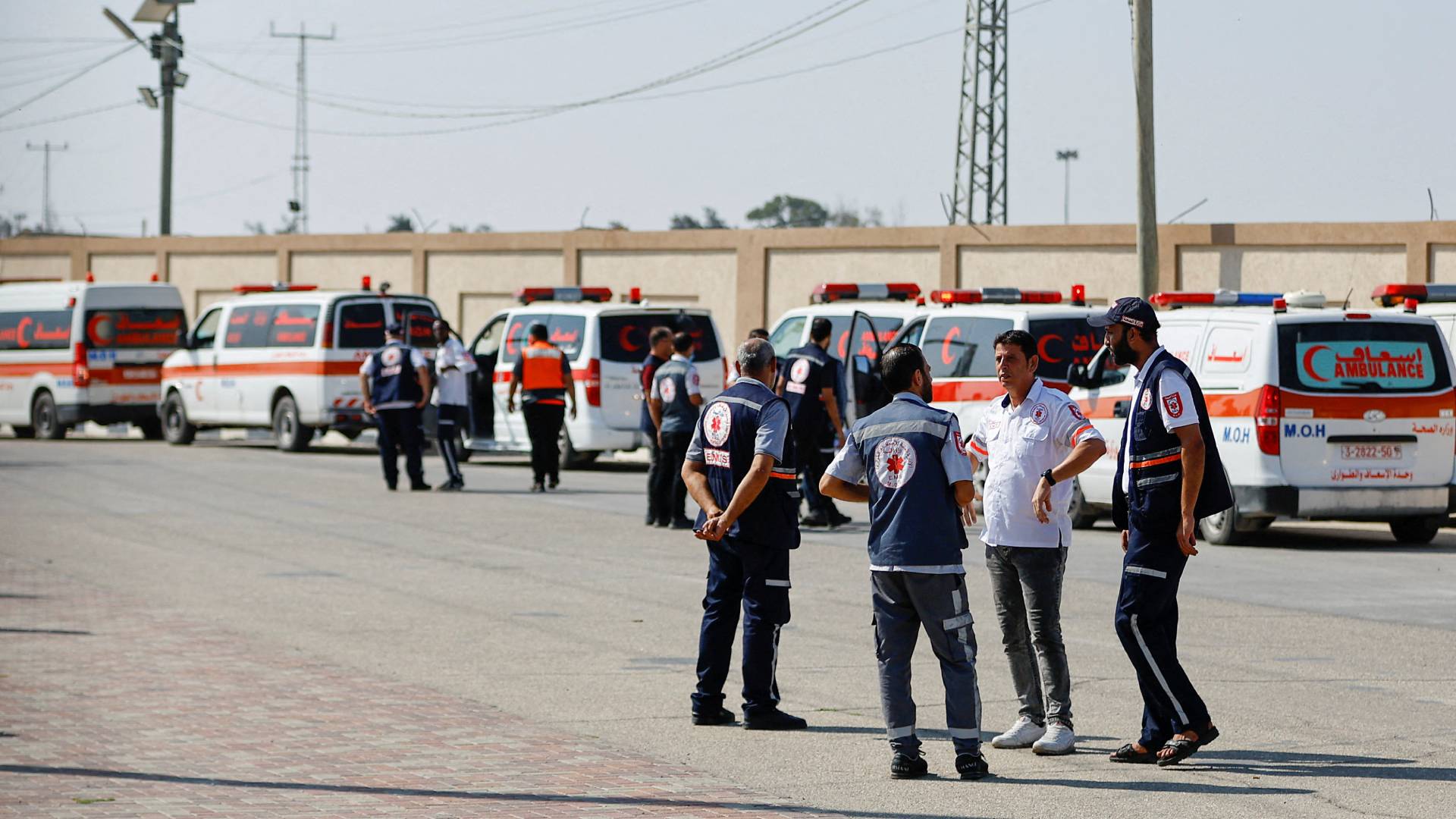 - 12:41Ασθενοφόρα σε αναμονή για τη μεταφορά τραυματιών στην Αίγυπτο
