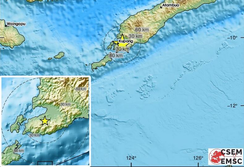 Το επίκεντρο εντοπίζεται 21 χιλιόμετρα βορειοανατολικά της πόλης Κουπάνγκ του νησιού και το εστιακό βάθος υπολογίζεται σε 28 χιλιόμετρα.