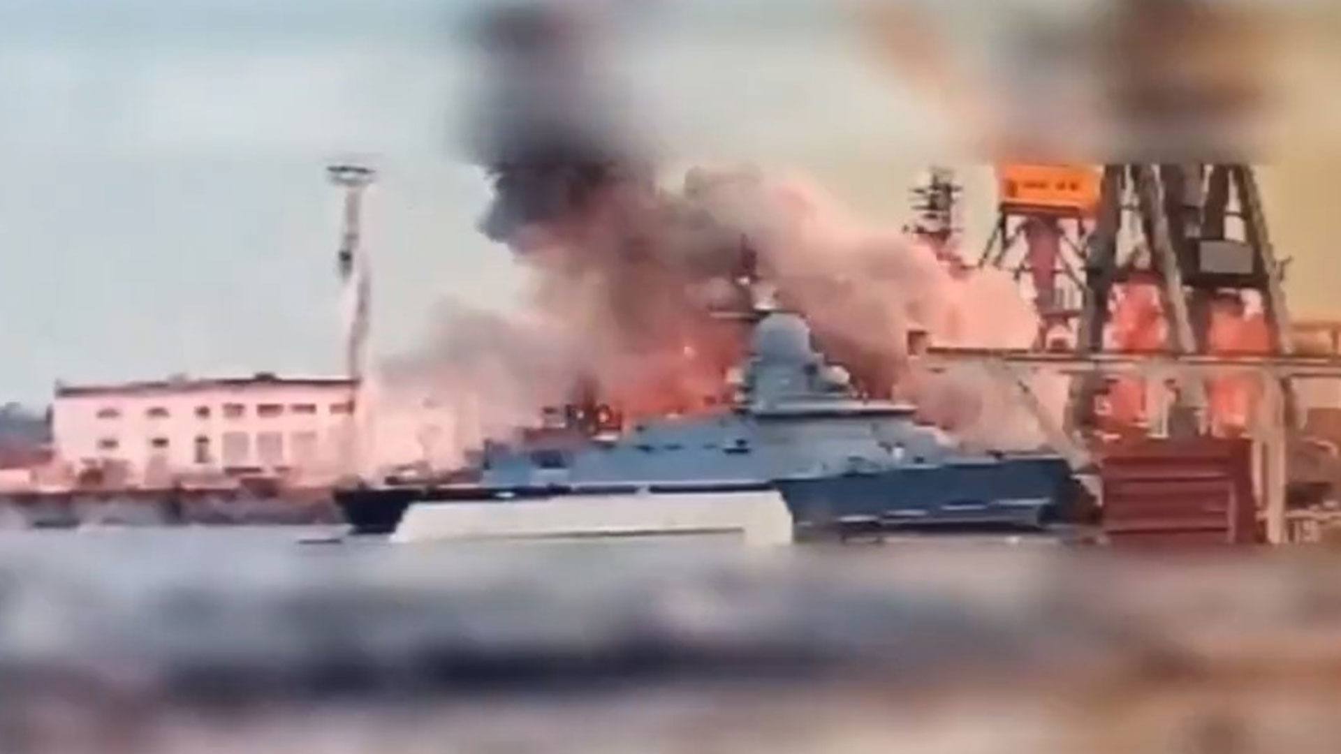 ⚡️Footage of French #SCALP missiles hitting the Russian ship #Askold, located at a shipyard in temporarily occupied #Kerch, #Crimea, has appeared online. pic.twitter.com/M523IuMMV0