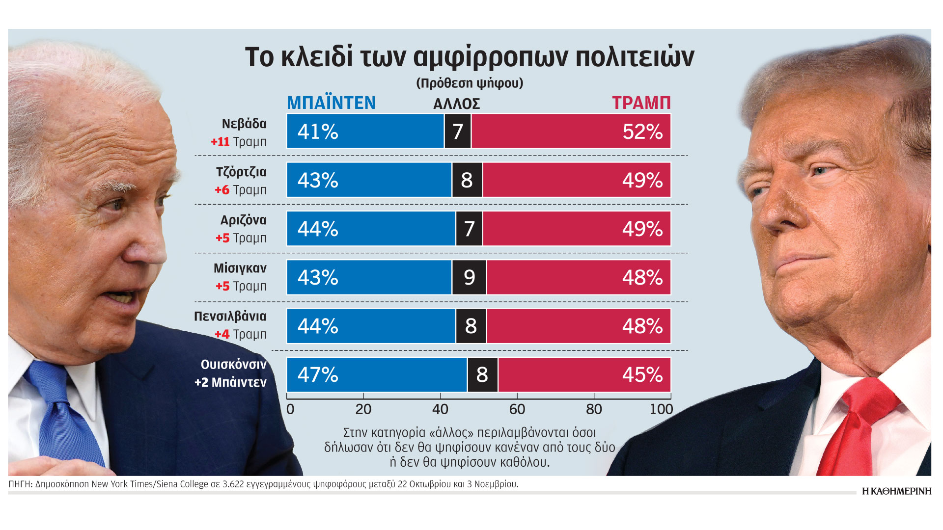 Ο Τραμπ έγινε έτσι ο πρώτος πρόεδρος των Ηνωμένων Πολιτειών που βρίσκεται στο εδώλιο του κατηγορουμένου εδώ και περισσότερο από έναν αιώνα. Ο τέως πρόεδρος καλείται τώρα να ισορροπήσει τον ρόλο του κατηγορουμένου με εκείνον του υποψηφίου προέδρου. Ενα χρόνο από τις προεδρικές εκλογές, ο Τραμπ απολαμβάνει σημαντικό δημοσκοπικό προβάδισμα έναντι του προέδρου Τζο Μπάιντεν, όπως έδειξε και σφυγμομέτρηση του Σαββατοκύριακου από τους New York Times σε εκλογικά αμφίρ-ροπες πολιτείες.