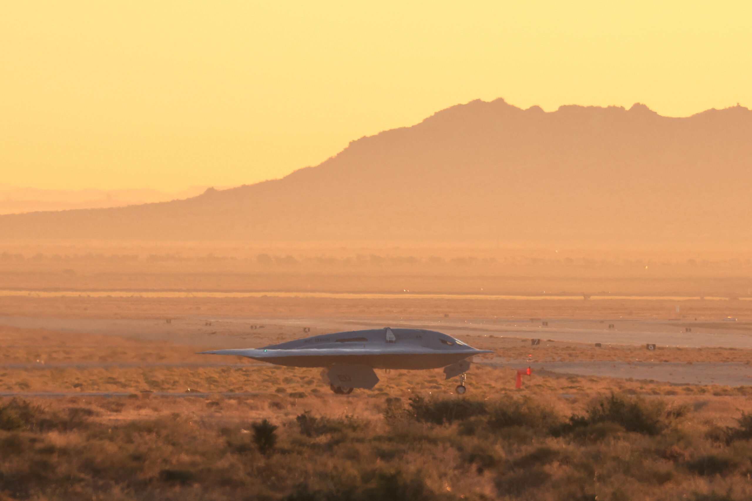Το B-21 απογειώθηκε από τις εγκαταστάσεις της Northrop στο εργοστάσιο 42 της Πολεμικής Αεροπορίας στο Παλμντέιλ της Καλιφόρνιας τα ξημερώματα της Παρασκευής, προσφέροντας μια πρώτη ματιά στο νέο βομβαρδιστικό που αναπτύχθηκε υπό αυστηρή ασφάλεια.