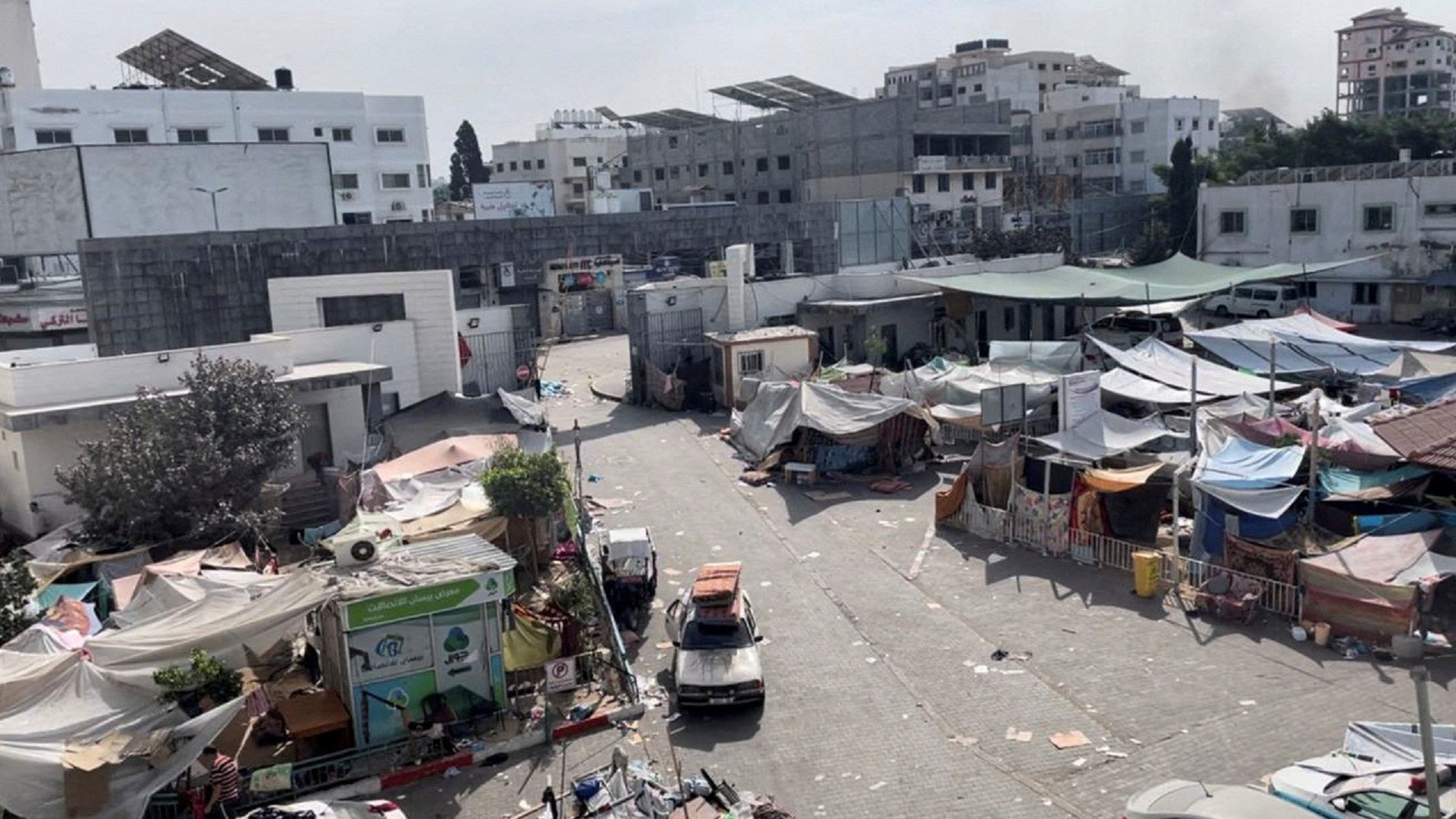 Σύμφωνα με τον ΟΗΕ, τουλάχιστον 2.300 άνθρωποι, ασθενείς, νοσηλευτικό προσωπικό και εκτοπισμένοι, βρίσκονται στο κτιριακό συγκρότημα.