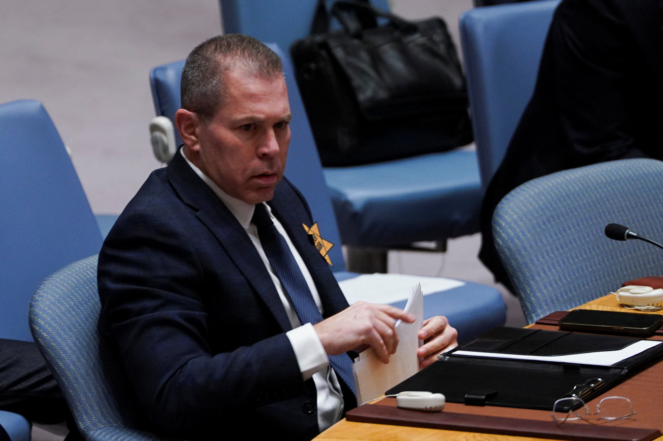 Ο πρέσβης του Ισραήλ στον ΟΗΕ, Γκίλαντ Ερνταν, κατήγγειλε το ψήφισμα του Συμβουλίου Ασφαλείας του ΟΗΕ που καλεί σε «ανθρωπιστική παύση» ως «αποσυνδεδεμένο από την πραγματικότητα» και «χωρίς νόημα».
