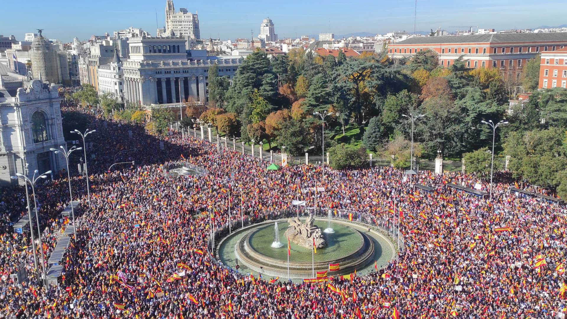 Οι διαδηλωτές κάθε ηλικίας, κρατώντας ισπανικές ή ευρωπαϊκές σημαίες, συγκεντρώθηκαν στην πλατεία Θιμπέλες στο κέντρο της Μαδρίτης φωνάζοντας «Σάντσεθ προδότη», «Ο Σάντσεθ στη φυλακή!», «Ο Σάντσεθ δεν είναι πρόεδρος (της κυβέρνησης), είναι εγκληματίας» ή «Η Καταλωνία είναι Ισπανία».