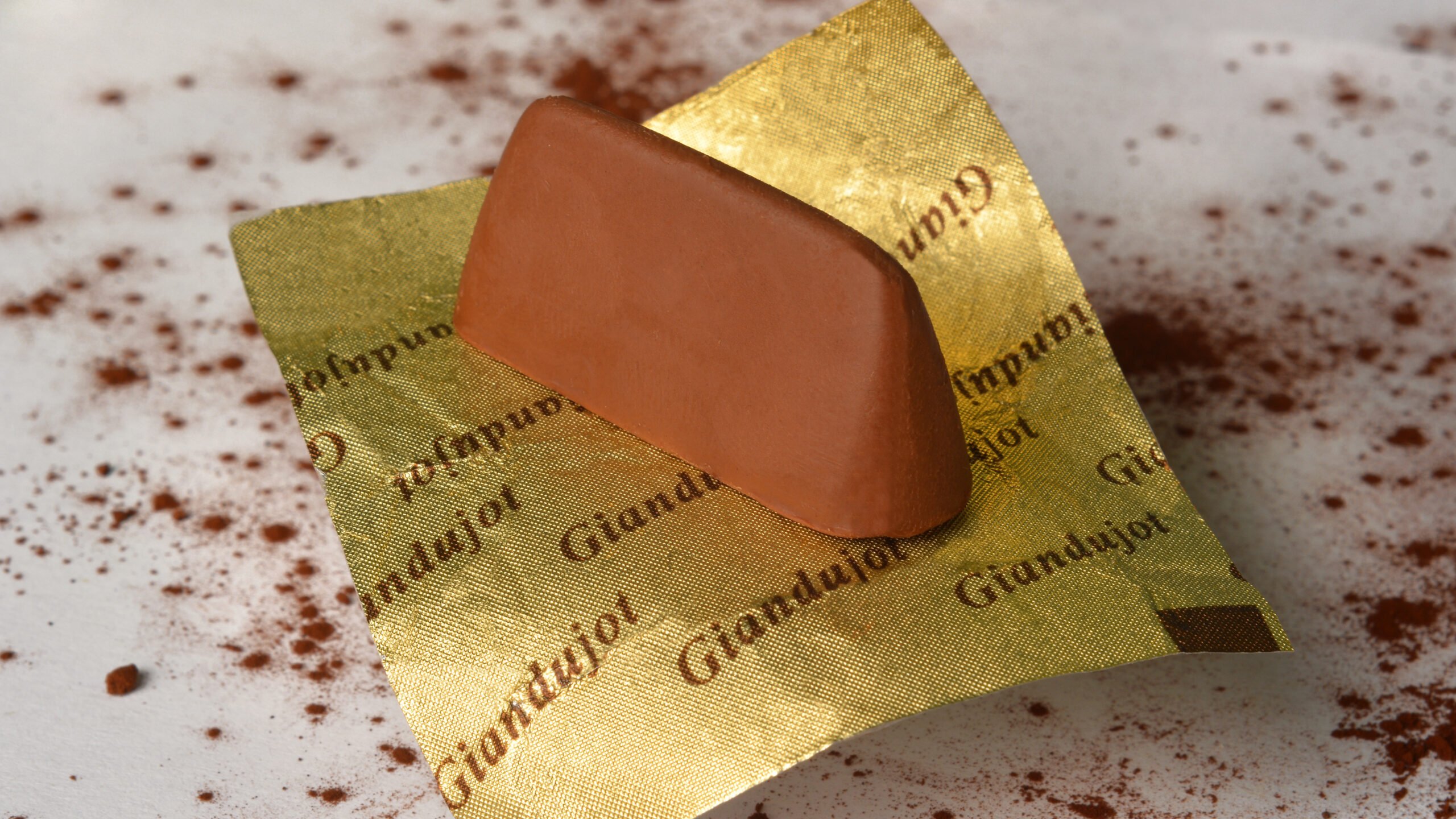 Πρόκειται για το Τζιαντουιότο (Gianduiotto), ένα μικρό, σε σχήμα ράβδου, μικρό σοκολατάκι από κακάο και φουντούκια, τυλιγμένο σε χρυσό περιτύλιγμα. Κάτι σαν… μασίφ νουτέλα, όπως λένε οι λάτρεις του.