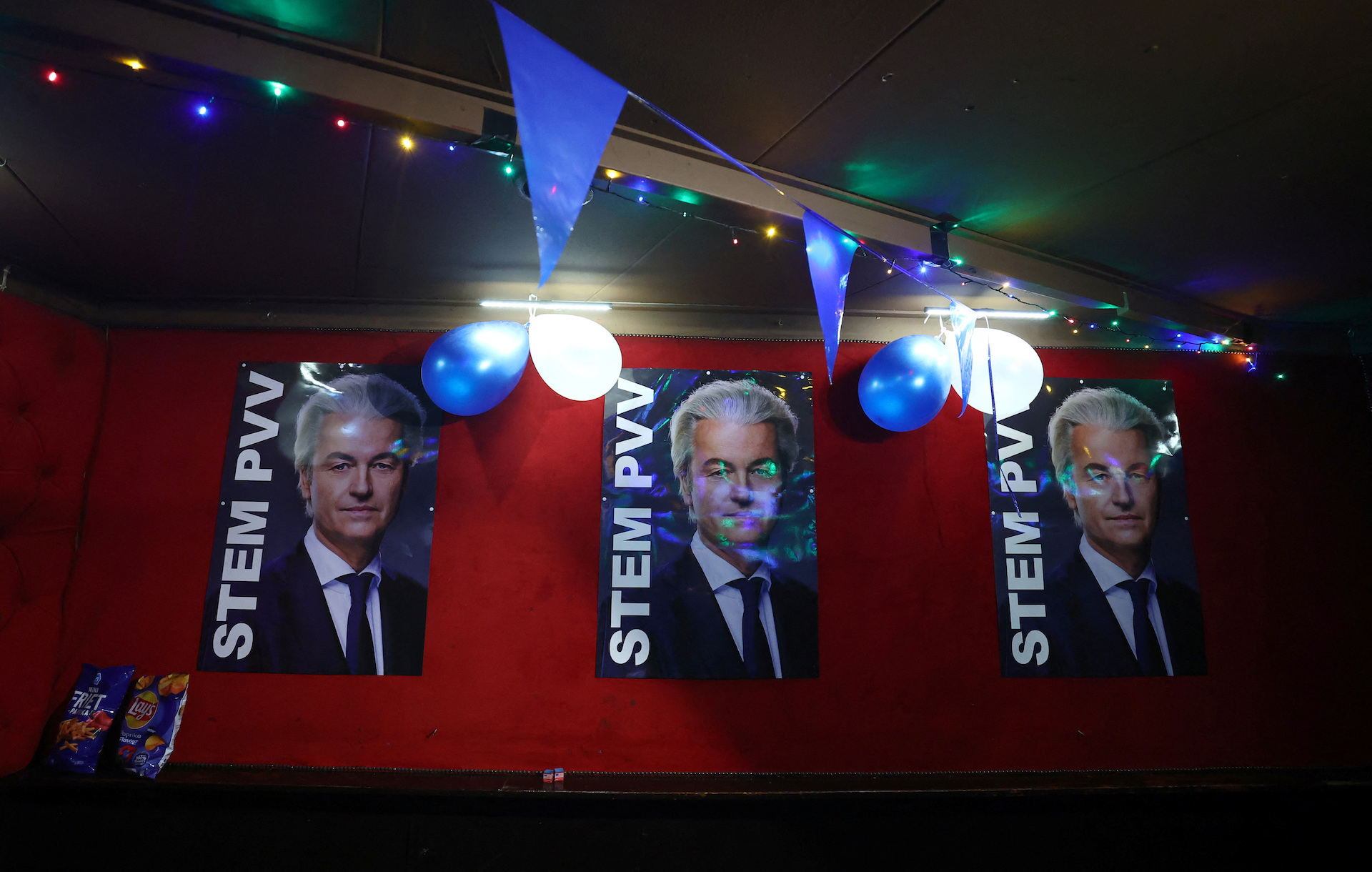 – το ακροδεξιό Κόμμα της Ελευθερίας (PVV) του Γκερτ Βίλντερς έρχεται πρώτο με 35 έδρες (σε σύνολο 150),