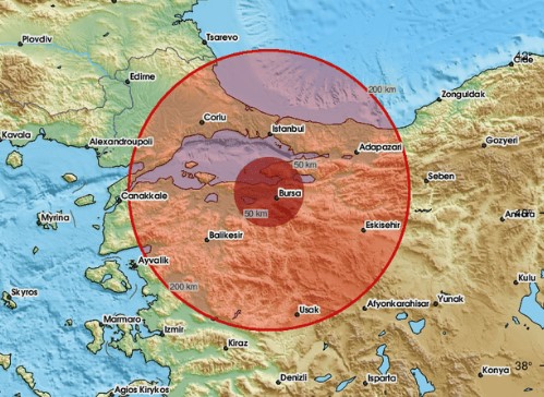 Σύμφωνα με το Ευρωπαϊκό Μεσογειακό Σεισμολογικό Κέντρο, ο σεισμός είχε επίκεντρο 26 χιλιόμετρα βορειοδυτικά της Προύσας, όπου και έγινε ιδιαίτερα αισθητός.