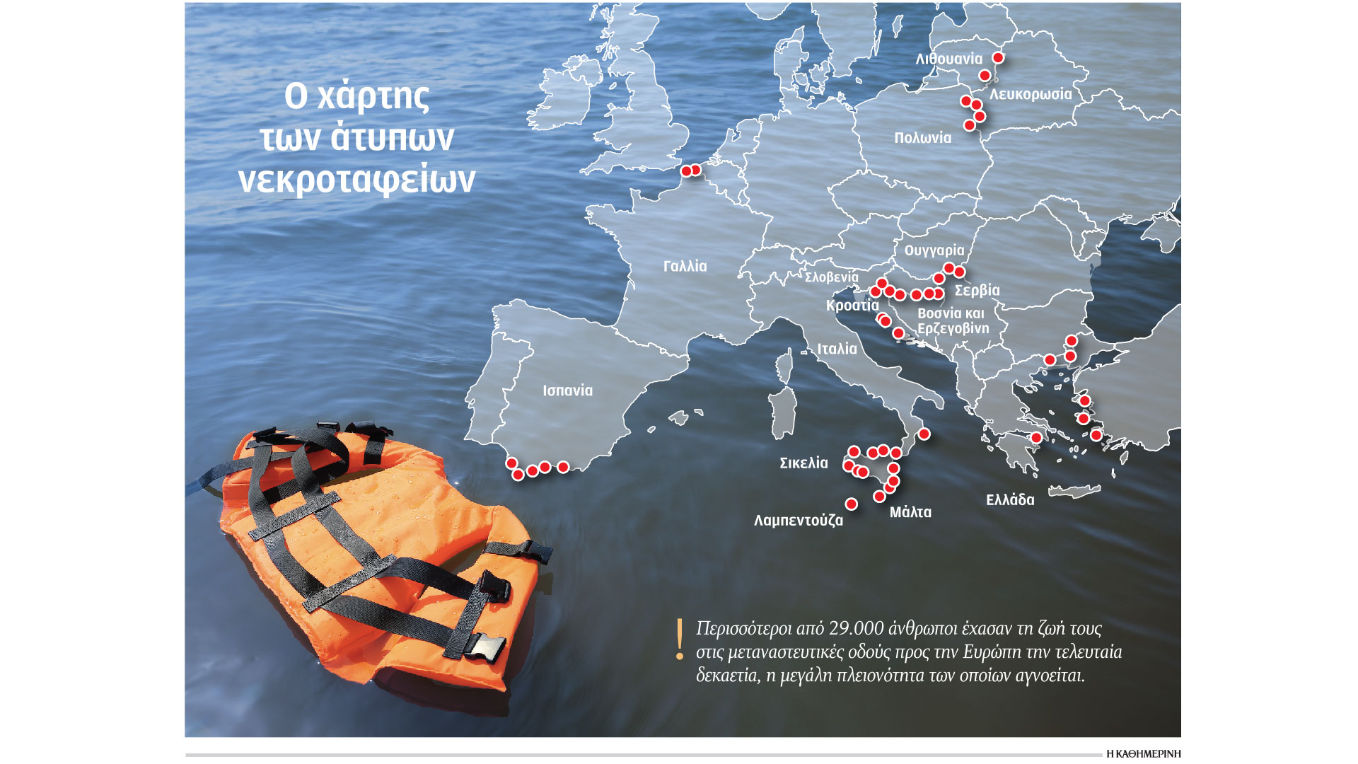 ΒΡΥΞΕΛΛΕΣ. Σε ανώνυμα μνήματα θάβονται πρόσφυγες και μετανάστες σε όλη την Ευρωπαϊκή Ενωση, σε κλίμακα πρωτόγνωρη για περίοδο ειρήνης, σύμφωνα με έρευνα της εφημερίδας The Guardian.