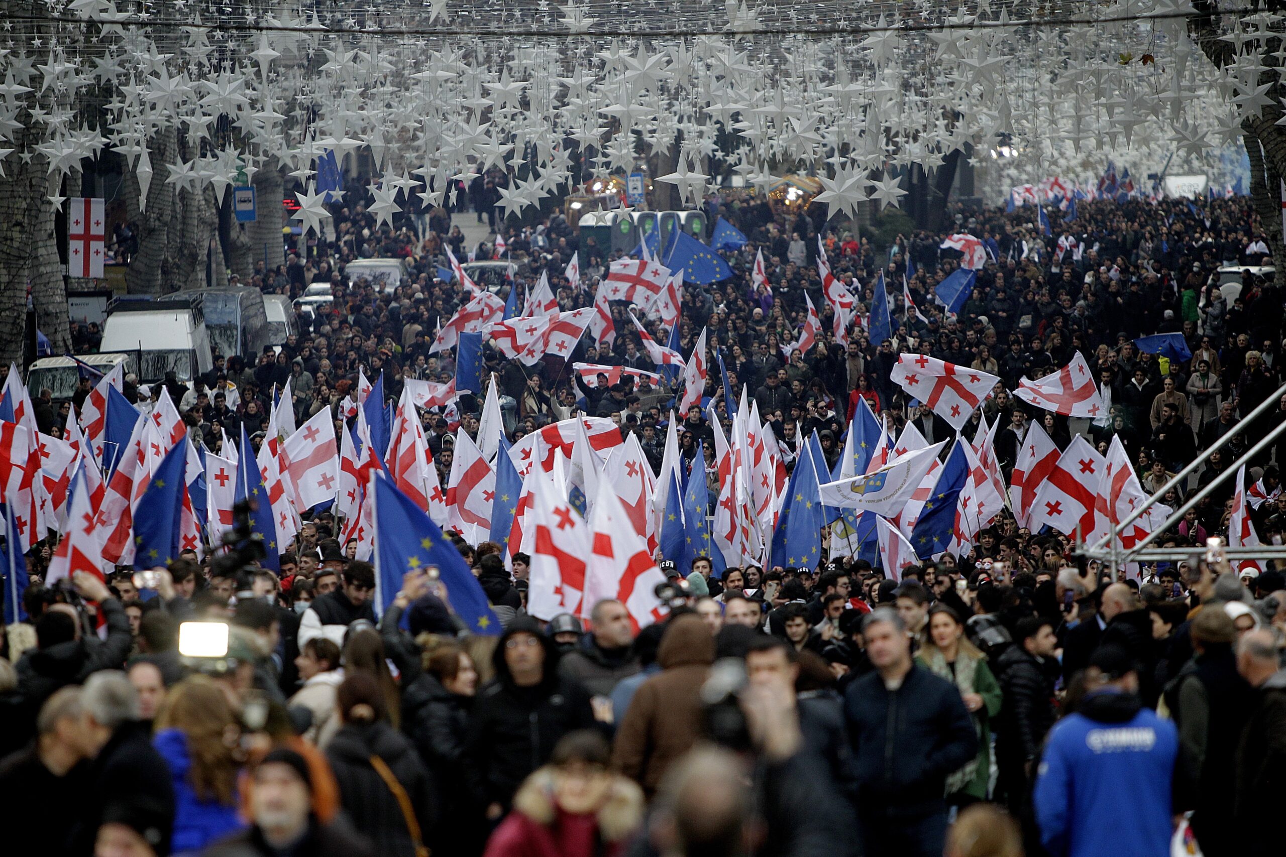 Κρατώντας γεωργιανές και ευρωπαϊκές σημαίες, οι διαδηλωτές συγκεντρώθηκαν σε πλατεία του κέντρου της πόλης. «Η ένταξη στην ΕΕ ίσως είναι μια μακρινή προοπτική, όμως το πρώτο βήμα έγινε και είμαστε ευτυχείς», σχολίασε η 29χρονη νεαρή Τεόνα Μγκελάτζε. Η Λαμάρα Ινστκιρβέλι, μια 70χρονη συνταξιούχος, εξέφρασε την ελπίδα «τα εγγόνια μας να ζήσουν σε μια ευρωπαϊκή Γεωργία».
